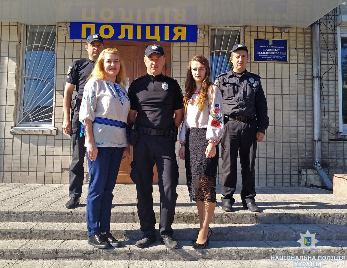 У свято української вишиванки робочий день поліцейський у всіх територіальних відділах та відділеннях поліції Житомирщини розпочався із патріотичних флешмобів, якими правоохоронці закликали українців приєднатися до вшанування національної святині. А Лугинські та Попільнянські поліцейські святкові провели разом з чепурними школяриками.
