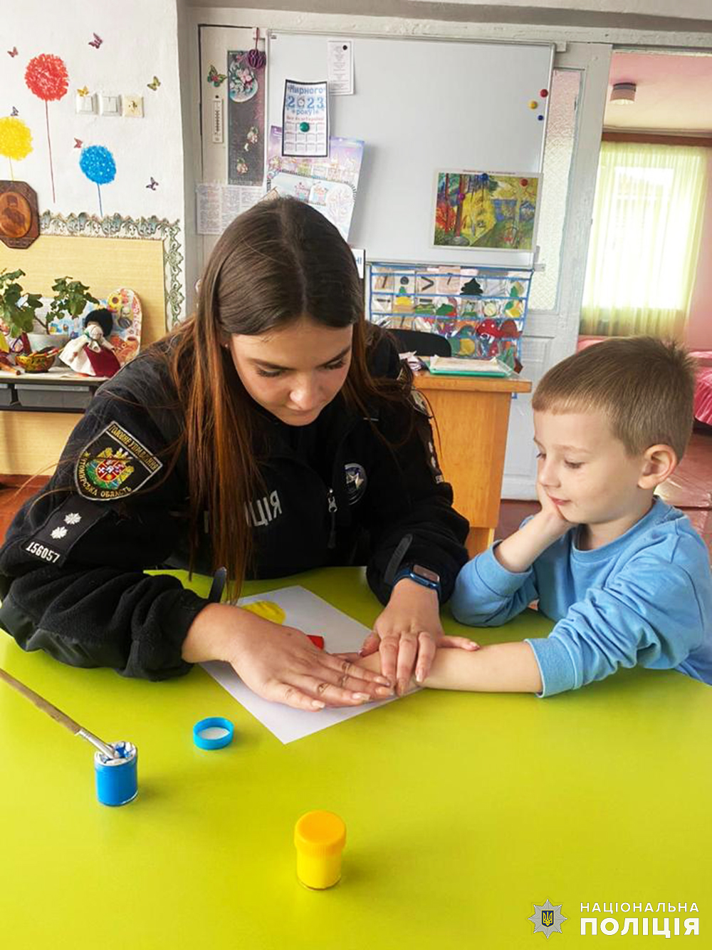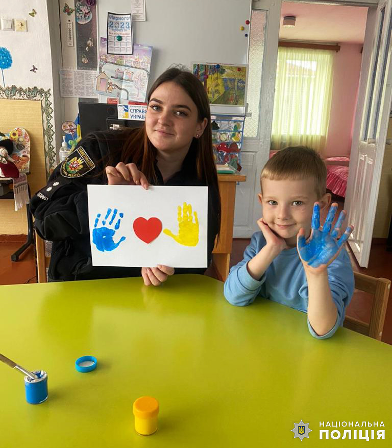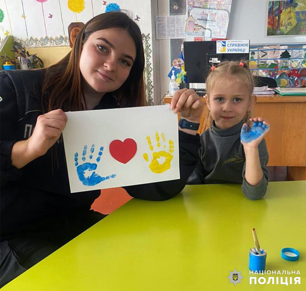 Бердичівські ювенальні поліцейські разом із дітками малювали листівки для військових ЗСУ