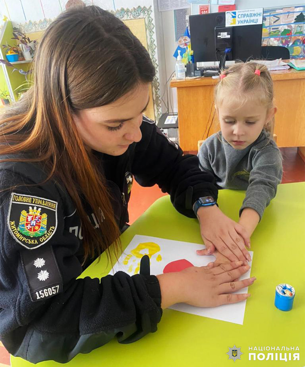 Ювенальна поліцейська Андрушівки постійно спілкується з вихованцями дошкільних навчальних закладів та ліцеїв. Серед них є й ті, хто вимушено змінили місце проживання через вторгнення рф.