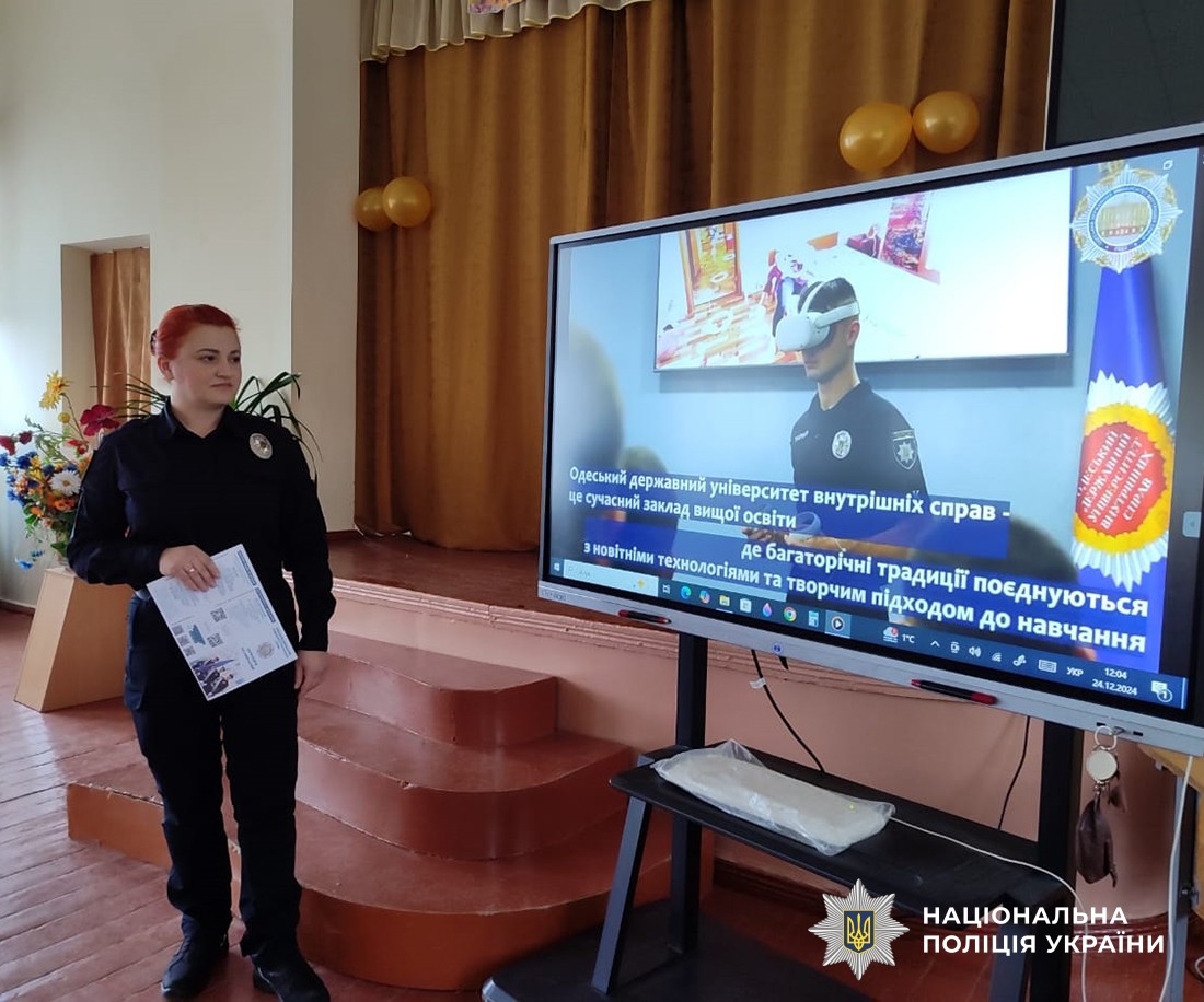 Правоохоронці надали відповіді на запитання ліцеїстів і залишили їм пам’ятки з переліком закладів вищої освіти системи МВС України та інформацією щодо спеціальностей.