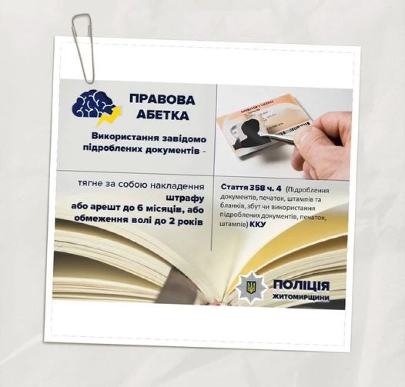 Бердичівські поліцейські завершили розслідування використання фальшивих документів жителями Ружинської громади