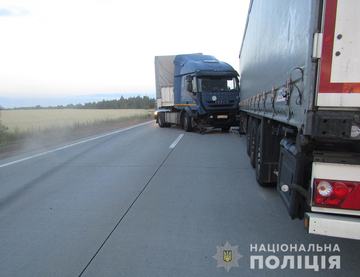Попередньо, водій автомобіля «Iveco» з напівпричепом, 41-річний громадянин Білорусі, рухаючись у напрямку м. Ковеля, здійснив наїзд на велосипедистку, 46-річну жительку Коростенського району, яка прямувала у напрямку м. Києва. У подальшому вантажівка зіткнулася з автомобілем «DAF» під керуванням 52-річного жителя Херсонщини.