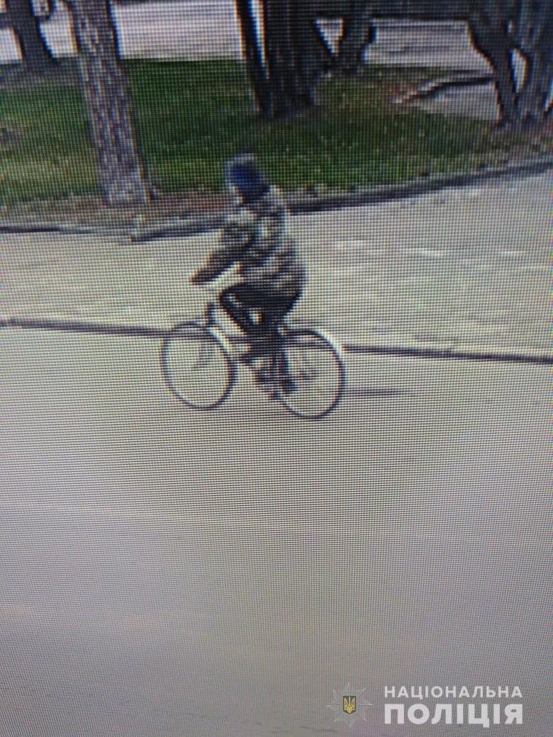 Був одягнений у куртку військового зразку з капюшоном, чорну шапку, спортивні штани, із собою мав шкільний камуфльований рюкзак.