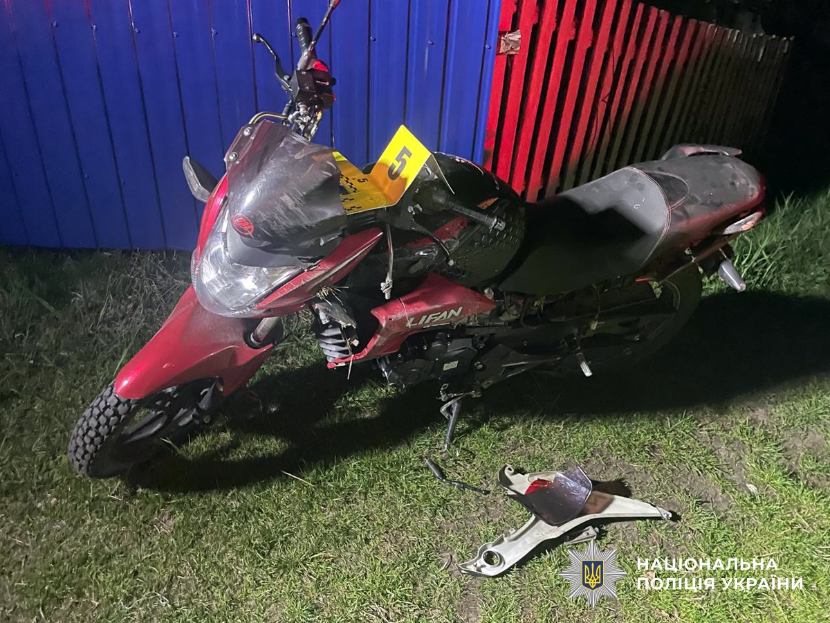 Уже за кілька годин, близько 1:10, правоохоронці отримали ще одне повідомлення про ДТП в селі Кам’янці. За кермом мотоцикла «Loncin» перебував 21-річний місцевий житель. Попередньо, він не впорався з керуванням та зіштовхнувся із залізобетонною опорою. Чоловіка було госпіталізовано.