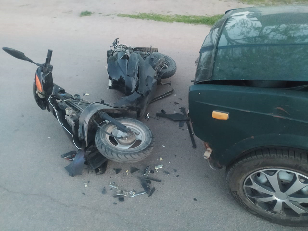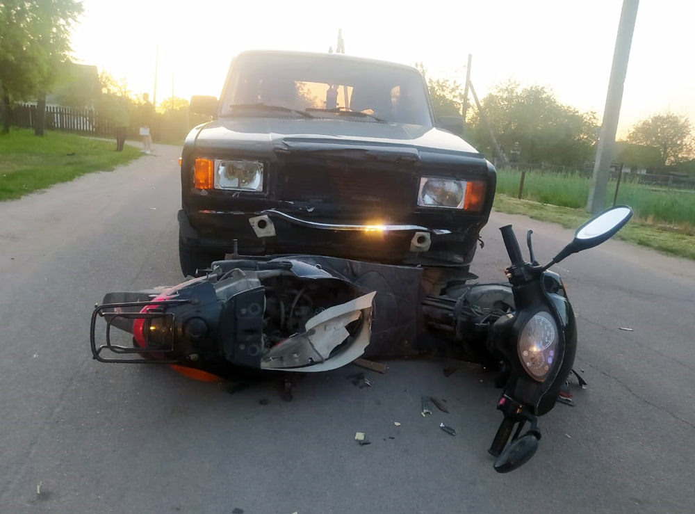 За кілька годин потому вже у селищі Хорошеві травмувався ще один керманич двоколісника. Попередньо, 18-річний водій скутера, виїжджаючи з другорядної дороги на головну, допустив зіткнення з автомобілем «ВАЗ-21070» під керуванням 19-річного місцевого жителя.