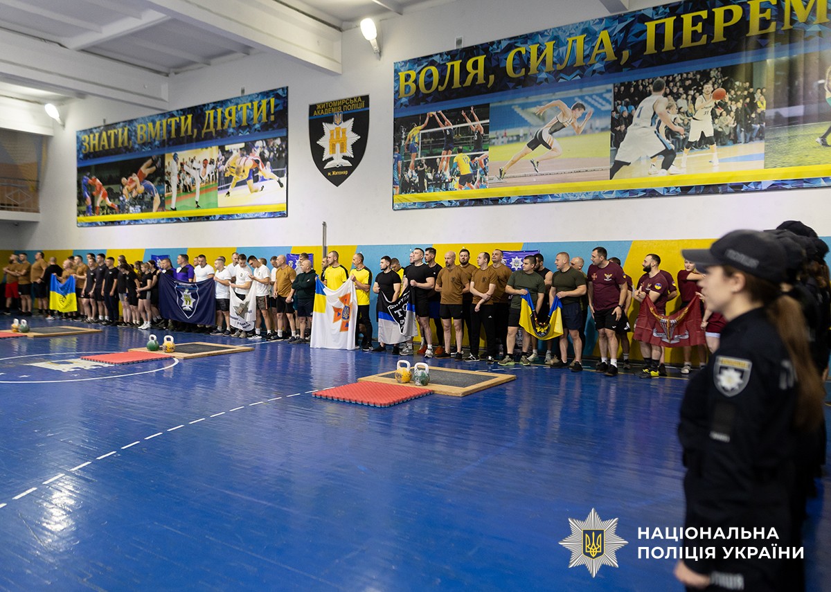 5 грудня на базі Житомирської академії поліції пройшов відкритий чемпіонат Головного управління Національної поліції в Житомирській області з гирьового спорту. Захід приурочений до Дня Збройних Сил України організований за ініціативи відділу професійного навчання УКЗ ГУНП. Метою змагань є зміцнення взаємодії та командного духу між підрозділами.