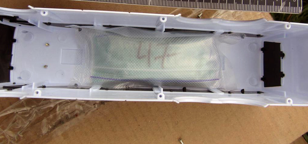 Поліцейські виявили, що у дитячій іграшці, що була у жінки, заховано пакунок з сипкою речовиною, попередньо — небезпечним психотропним засобом. Попередньо встановлено, що вона отримала оптову партію речовини поштою, аби згодом розфасувати її по дозах та розповсюдити на вулицях міста шляхом так званих «закладок».