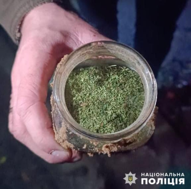 Тоді працівники слідчо-оперативної групи райвідділу за місцем проживання чоловіка провели невідкладний обшук та виявили скляну банку з канабісом, яку він ховав на подвір’ї у дитячій пісочниці.