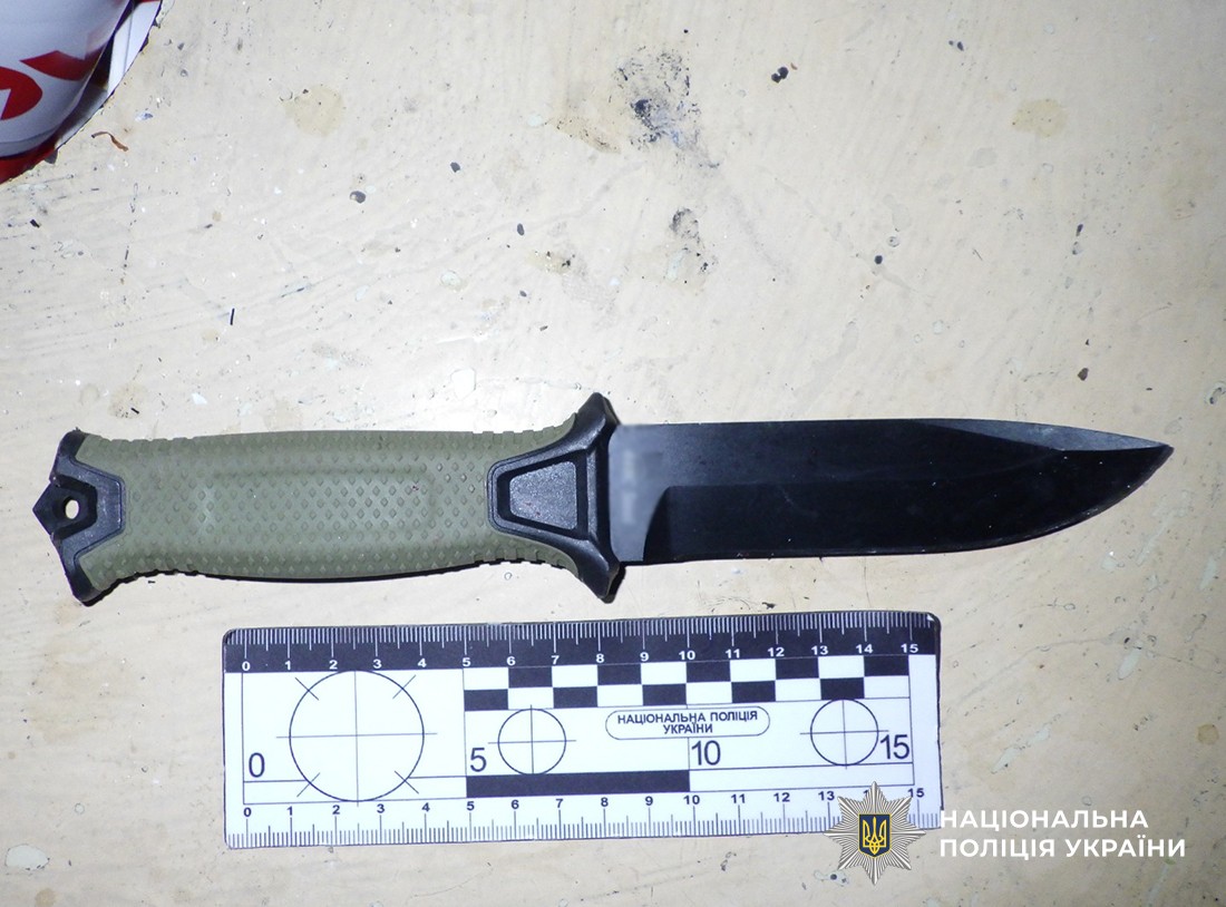 Поліцейські розшукали причетного неподалік місця події. У нього вилучили ніж. Чоловік пояснив, що нібито нещодавно знайшов клинок та вирішив носити при собі, у нагрудній сумці.