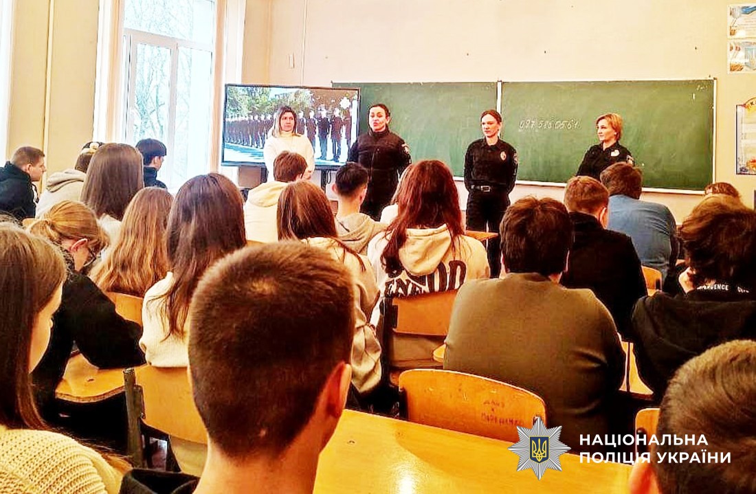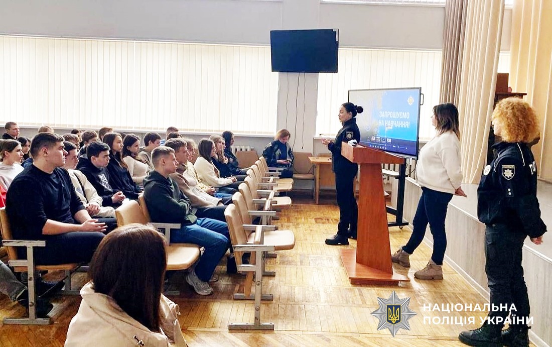 Поліцейські детально роз’яснили учням етапи відбору до навчального закладу, доступні факультети й спеціальності, а також умови проживання, харчування і розмір стипендії.