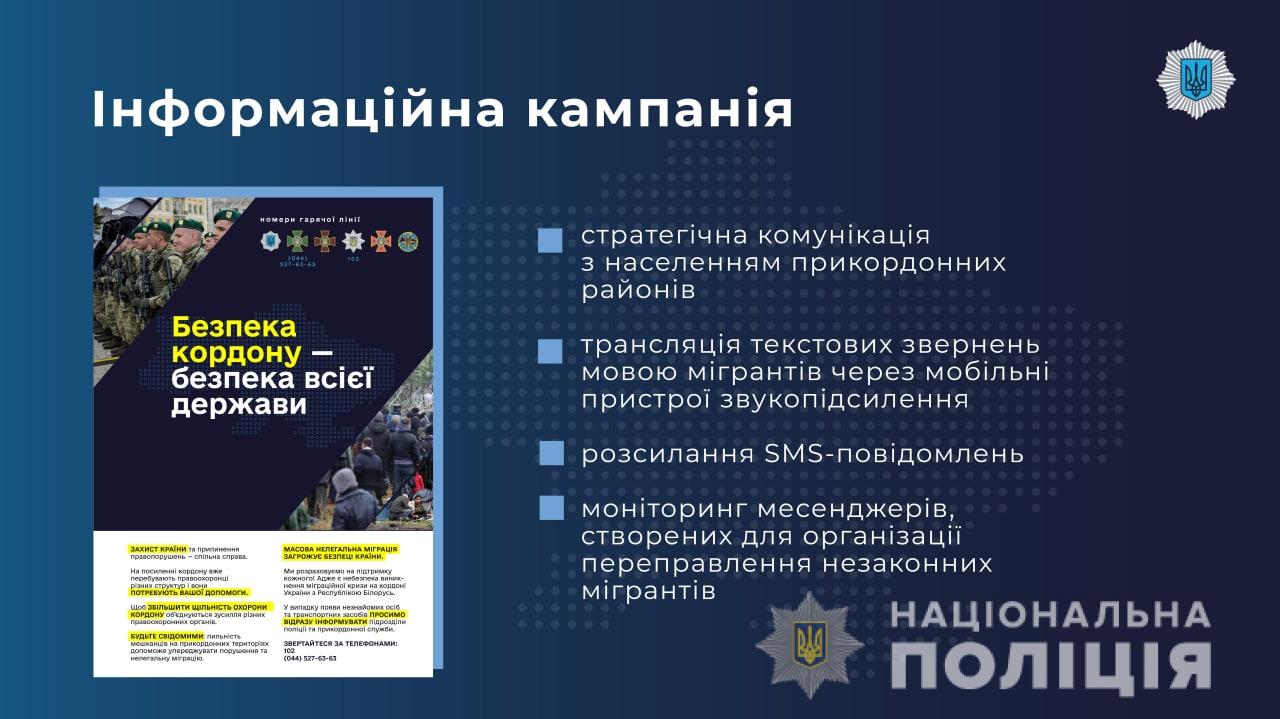 «Особливу увагу ми звертаємо на стратегічні комунікації та готуємо потужну інформаційну кампанію. Громадяни України мають чітко зрозуміти, що відбувається, усвідомлювати всю небезпеку потенційної міграційної кризи, знати яком чином, кого і як будуть сповіщати у випадку виявлення нелегальних мігрантів в прикордонних районах», - наголосив він.
