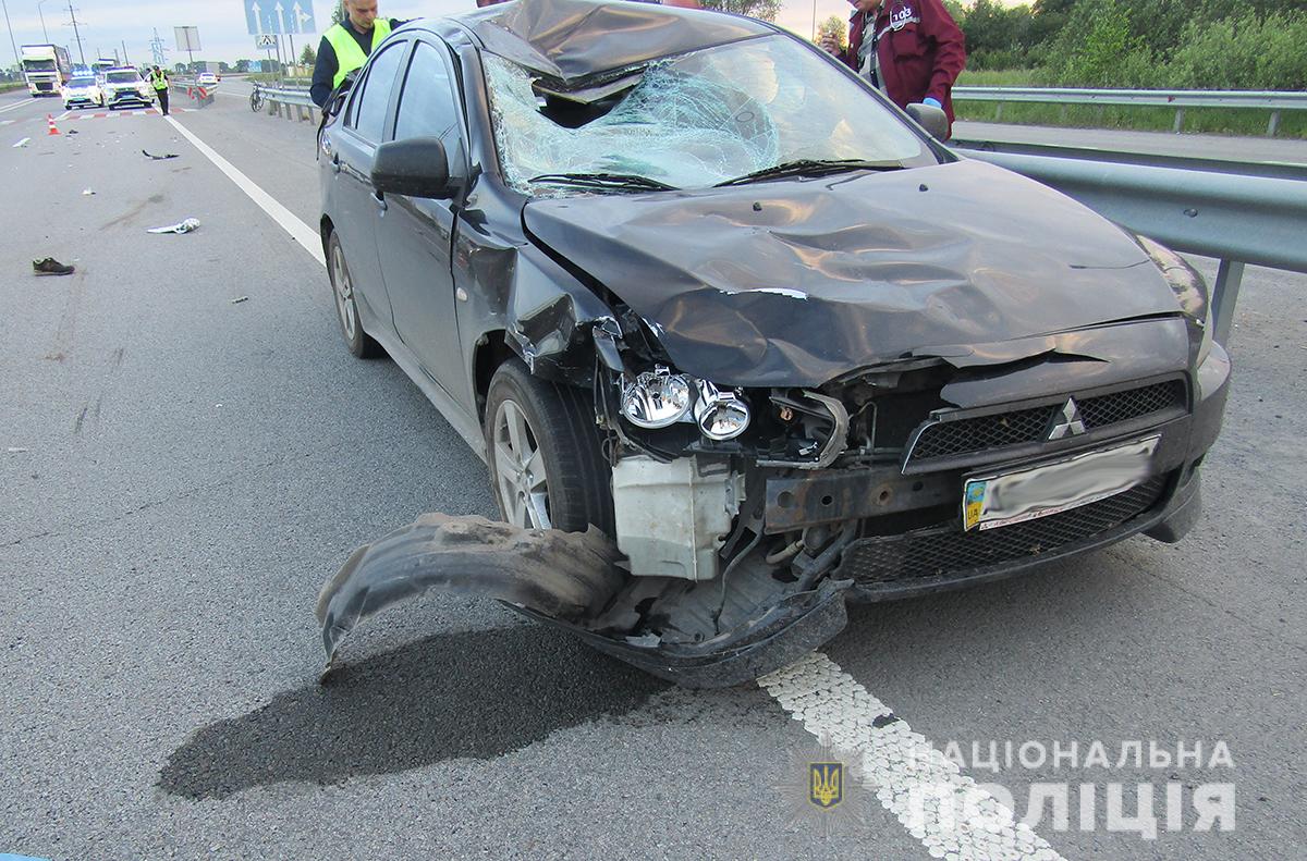 Попередньо встановлено, що водій автомобіля «Mitsubishi Lancer», 49-річний житель м. Вінниці, рухаючись у напрямку м. Житомира, вчинив наїзд на пішохода, 45-річного жителя м. Новограда-Волинського, який з велосипедом у руках переходив дорогу по нерегульованому пішохідному переходу.