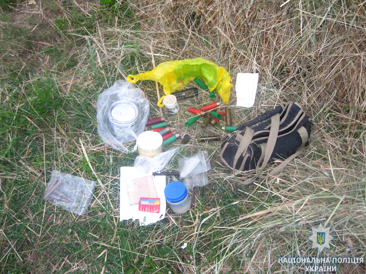 На місце події виїжджала слідчо-оперативна група, працівники якої з’ясували, що заявник знайшов сумку у копиці сіна на території свого домоволодіння. Усередині ноші знаходились жерстяні банки із сухою сумішшю, зовні подібною до пороху, понад десятка патронів калібром від 7,62 мм до 20 мм, а також гільзи мисливських набоїв.