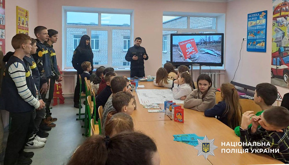 Наприкінці зустрічі вже з рятувальниками ДСНС поліцейські нагадали учням про мінну безпеку, а також, як діяти під час сигналу повітряної тривоги.