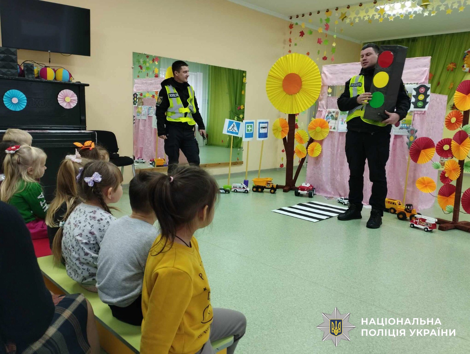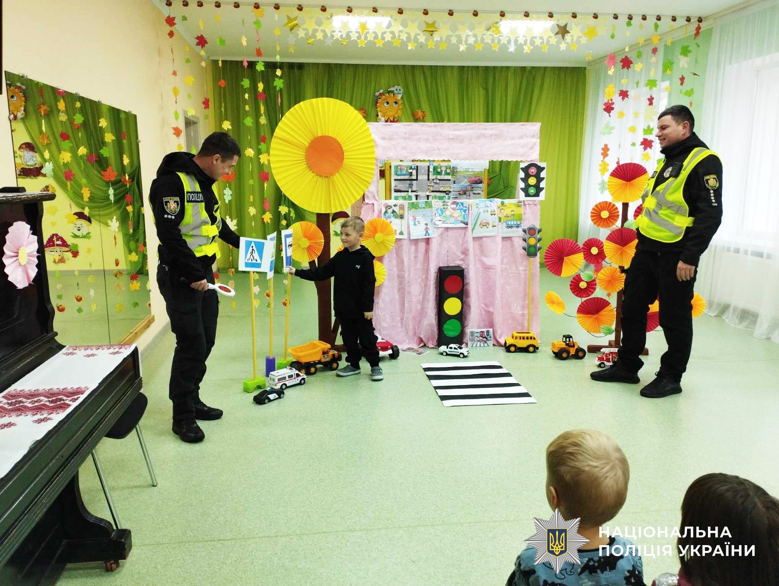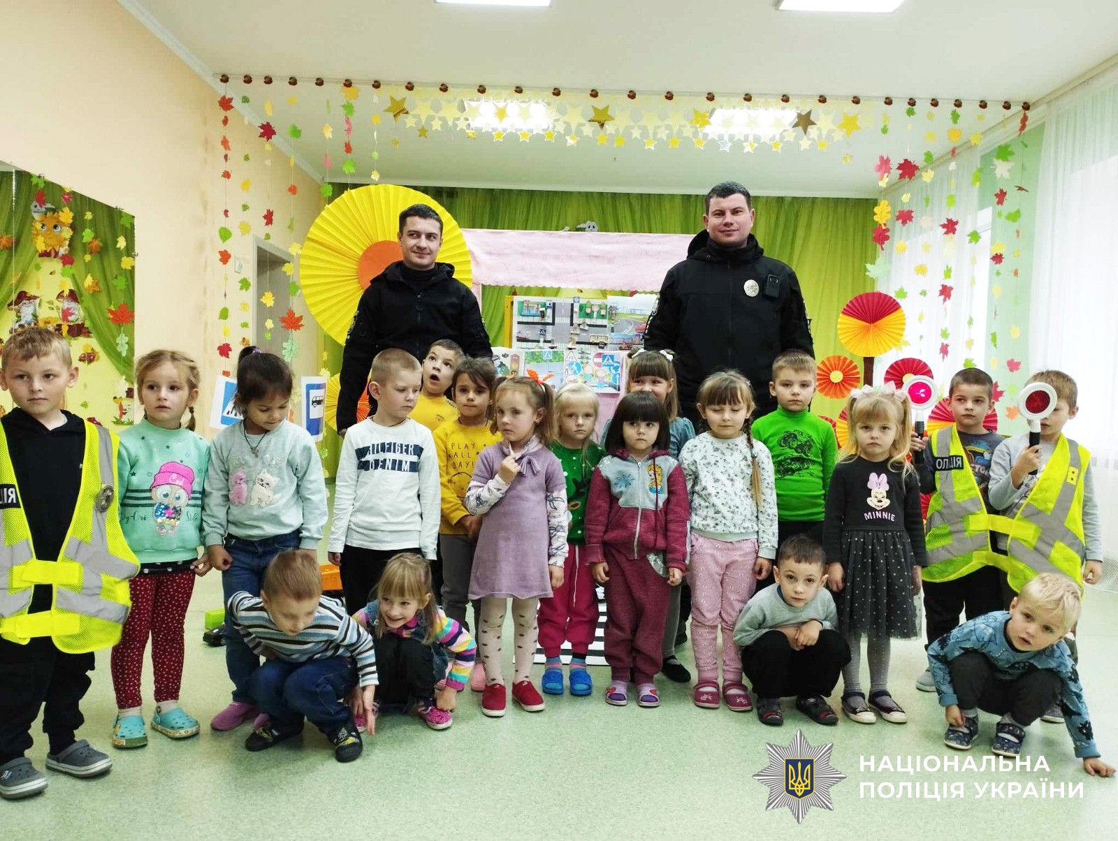 Вихованці освітнього закладу запам'ятали, що переходити дорогу можна тільки по зебрі, на пішохідному переході, на зелене світло. Поліцейські пояснювали й найменшим громадянам, що бігати на проїжджій частині неприпустимо, не можна й гратися поблизу автошляхів.