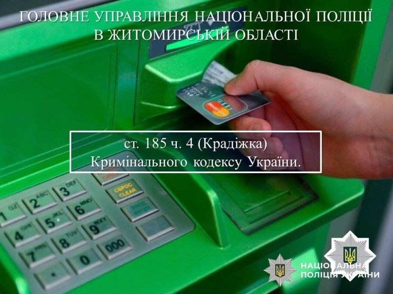Поліцейські з’ясували, що до крадіжки причетна 31-річна жителька Ушомирської громади. Жінка зняла всі кошти з карток, у тому числі й кредитні, та витратила їх. Чужі банківські картки викинула.