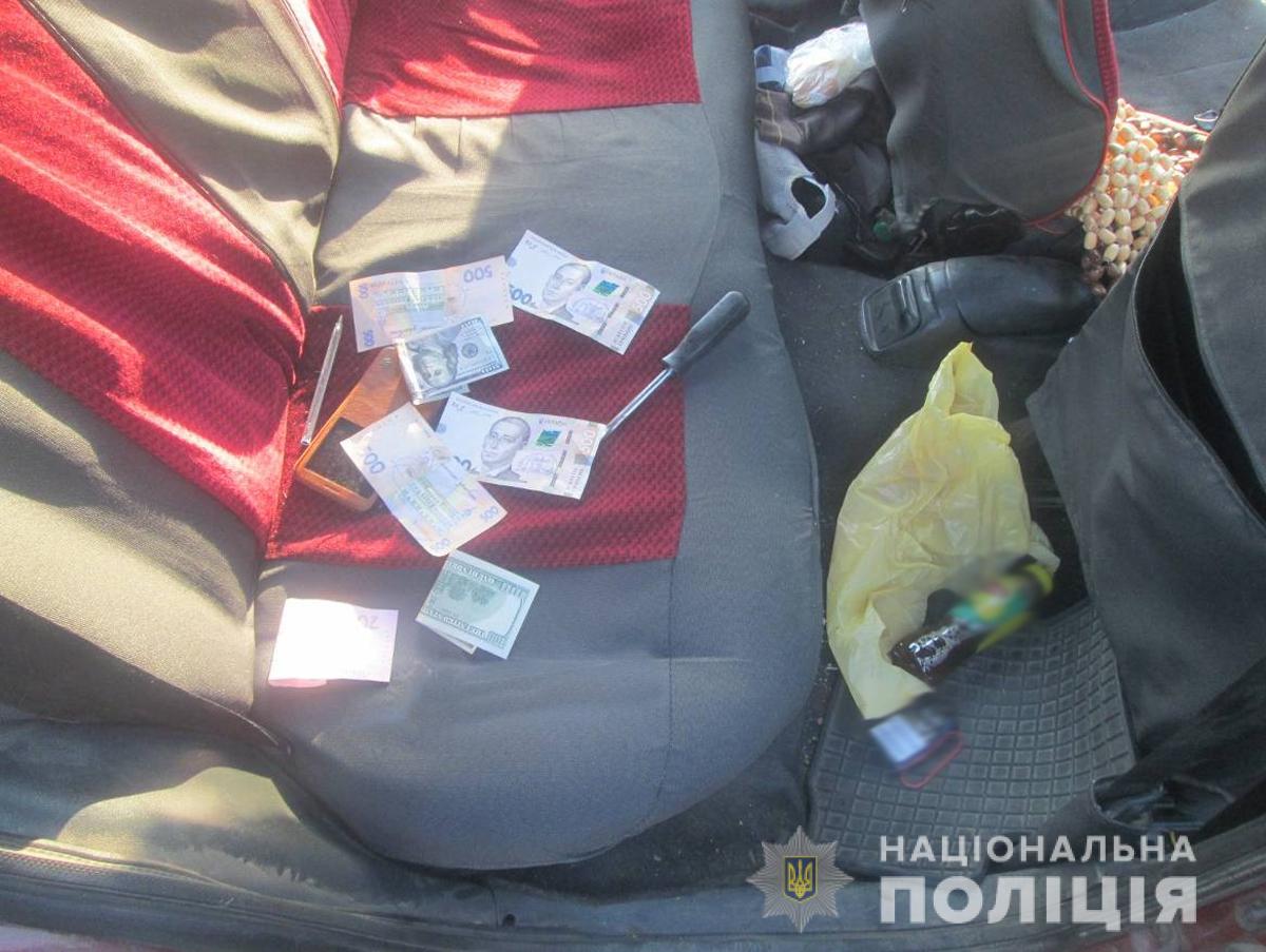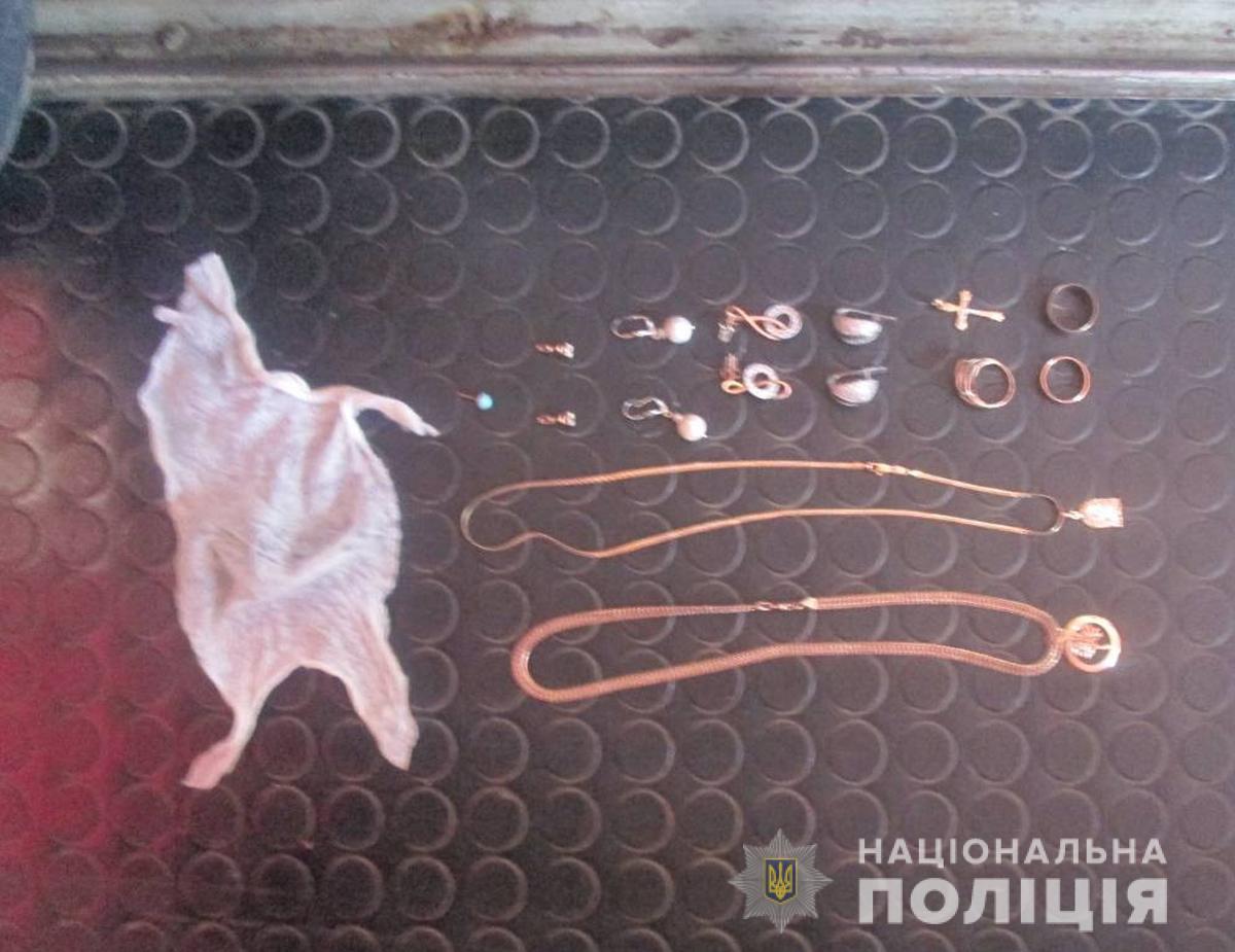Під час поверхневого огляду вказаних осіб та їх автомобіля «Форд Ескорт» поліцейські виявили та вилучили викрадені з будинку бердичівлянки ювелірні вироби, грошові кошти та засоби, які могли слугувати знаряддям зламу.