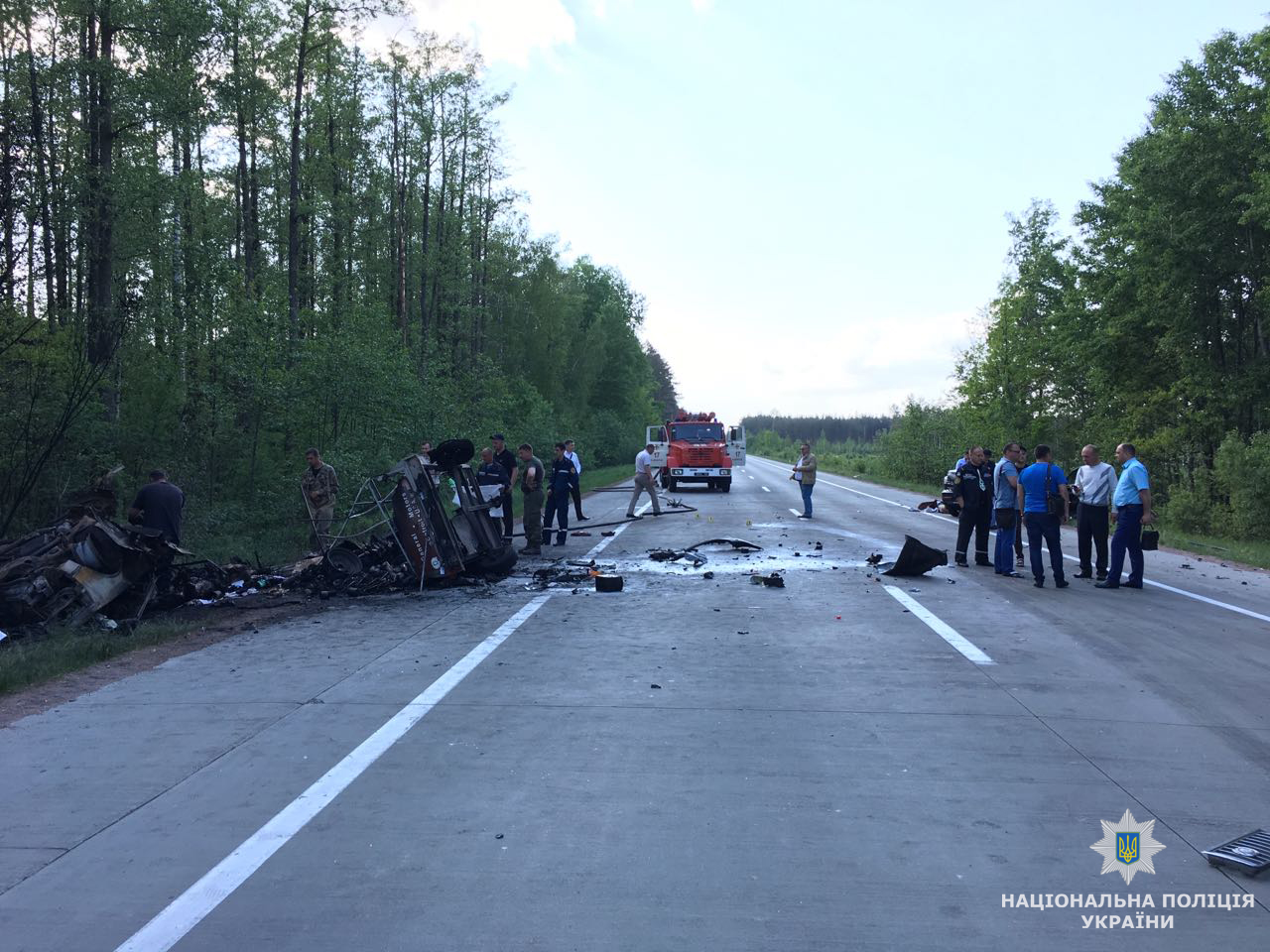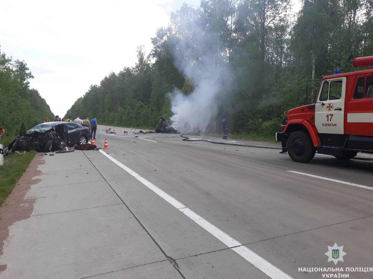 Дорожньо-транспортна пригода, у якій загорівся один з автомобілів, сталася 10 травня близько 15.00 на 225 км автодороги Київ-Ковель, поблизу с. Болярки Олевського району. Поліцією розпочато досудове розслідування.