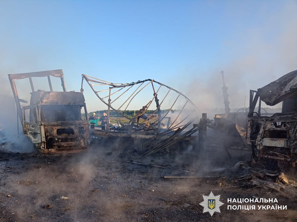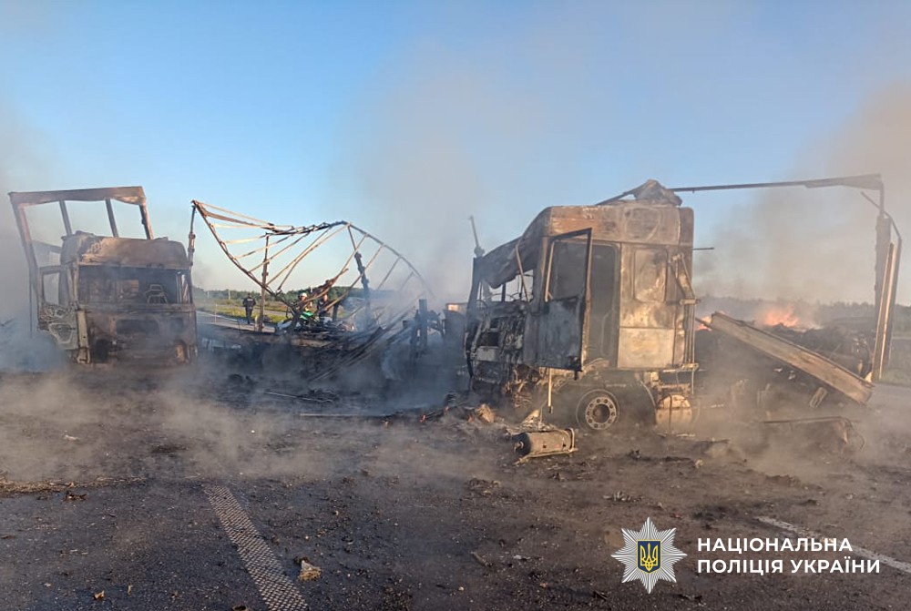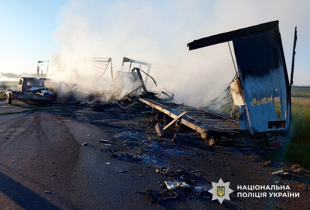 Попередньо, сталося зіткнення атомобіля «DAF», що рухався в напрямку м. Києва, з вантажівкою «Mersedes Benz Atego», що стояла на узбіччі. Після цього з транспортним засобом «DAF» зіштовхнувся мікроавтобус «Mersedes Vito», що рухався в попутному напрямку. Внаслідок цього відбулося займання всіх транспортних засобів.