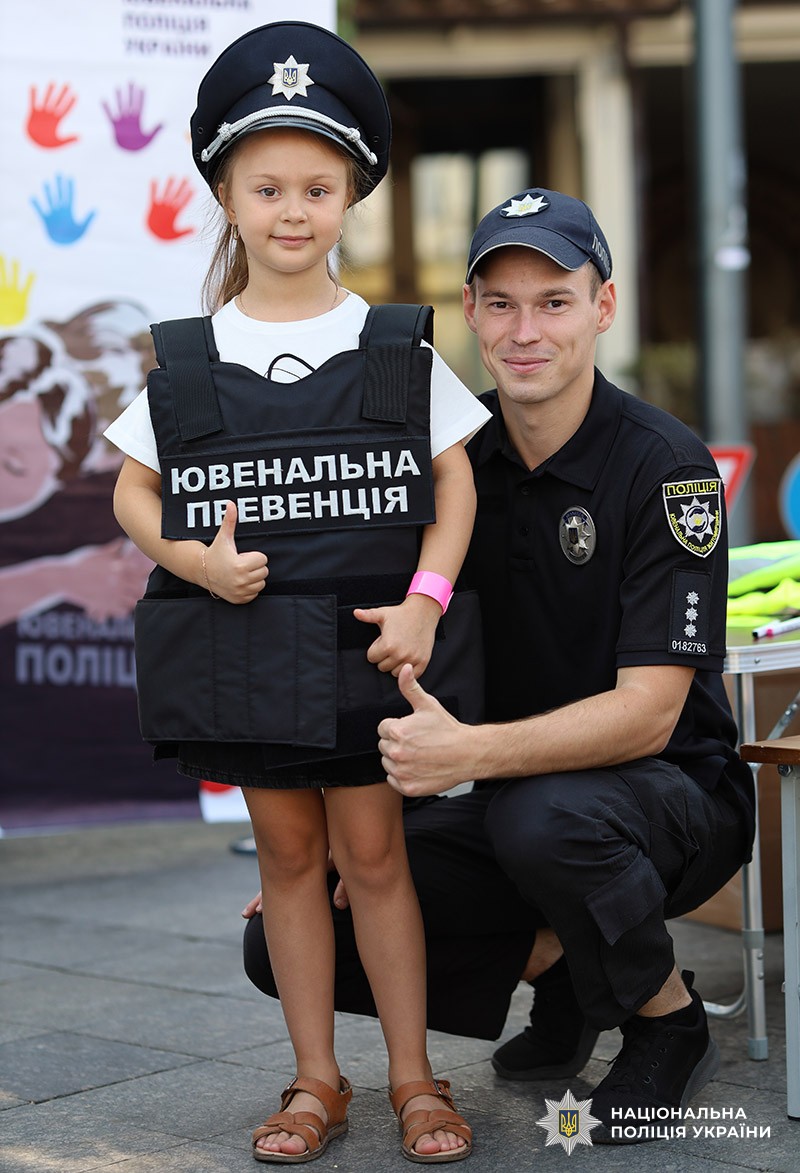 А напередодні, у недільний день 1 вересня, ювенальні поліцейські взяли участь у «Майстерці ментального здоров’я». Вони презентували свою професію на пішохідній вулиці Михайлівській у м. Житомирі разом з представниками інших екстрених служб, Товариства Червоного Хреста України, практичних психологів та інших учасників. Поліцейські розповідали дітям та батькам про свою роботу, дозволяли приміряти захисні обладунки, посидіти у службовому автомобілі, відповідали на питання щодо поведінки у різних ситуаціях. Разом з психологами з ГО «Генофонд нації» вони допомагали учасникам подолати страхи за допомогою інтерактивних ігор та арттерапії.