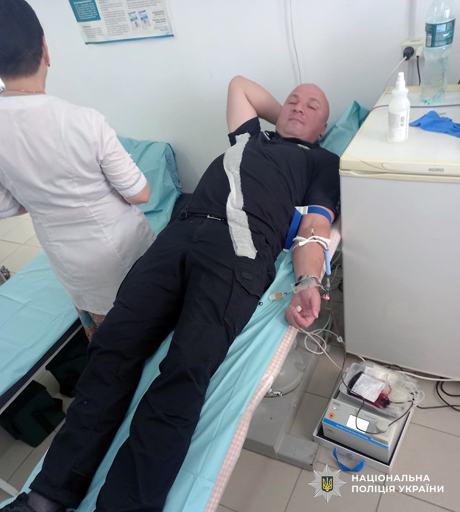 - Ми усвідомлюємо, що через війну лікарям вкрай необхідно мати достатній резерв у банку крові, - розповідає керівник відділу поліції №2 Андрій Оберняк. – Тож сьогодні, дізнавшись про роботу виїзного Центру крові, ми скористалися такою нагодою та разом з колегами доєдналися до інших донорів.