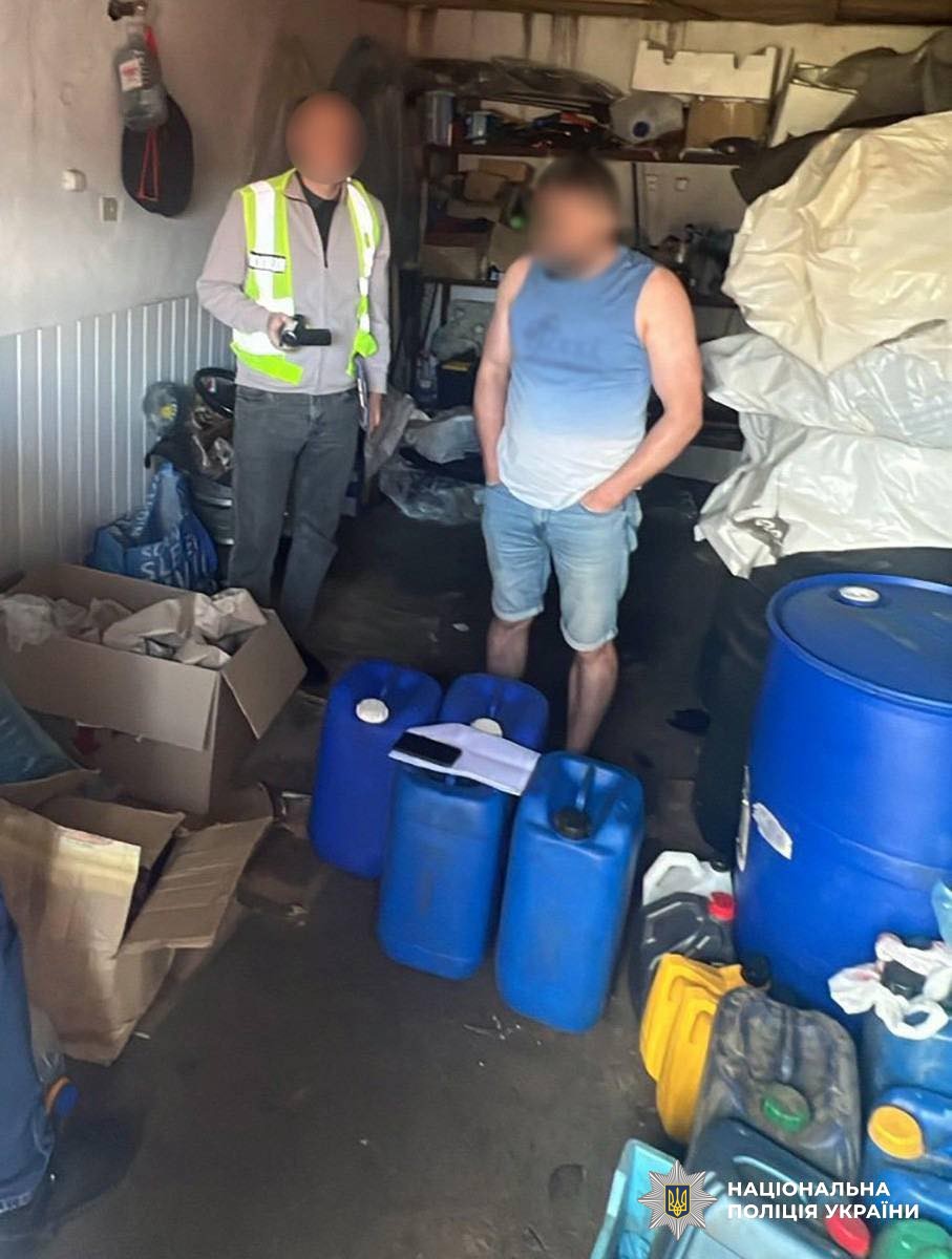 У липні 2025 року правоохоронці припинили незаконну діяльність групи та провели низку обшуків. З гаражних приміщень вилучили 62 пляшки по 1,5 л з бурою рідиною. Там же виявили ємності з прозорою рідиною: понад 200 пляшок – по 1,5 л, 75 пляшок – по 10 л, понад десяток – по 5 л, та ще кілька неповних пляшок різної місткості. Ще частину «горілки» та «коньяку» у тарах різного об’єму вилучили з місць проживання та автомобіля співучасників.