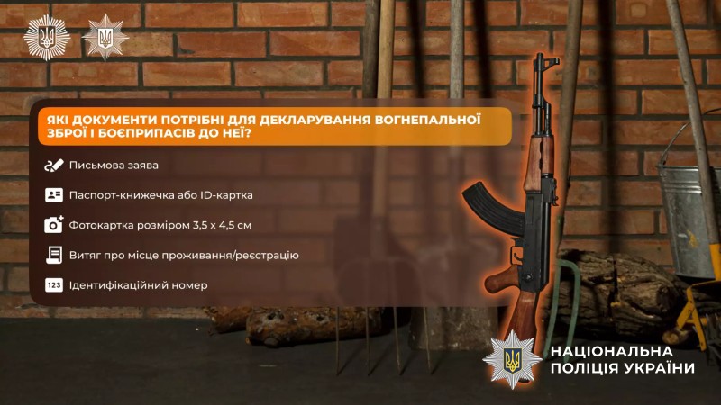Громадяни, які декларують зброю, отримують талон-повідомлення про декларування та вже на законних підставах зберігають зброю та боєприпаси. Кожному власнику правоохоронці роз’яснюють правила безпеки, носіння, зберігання та перевезення вогнепальної зброї й боєприпасів до неї та попереджають про відповідальність за їх порушення.