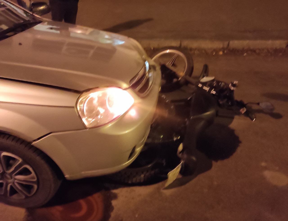 Поліцейські, які виїхали на місце події, попередньо встановили, що 20-річний водій мотоцикла «Shineray», виїжджаючи з другорядної дороги на головну, допустив зіткнення з автомобілем «Chevrolet Lacetti», під керуванням 22-річного бердичівлянина.