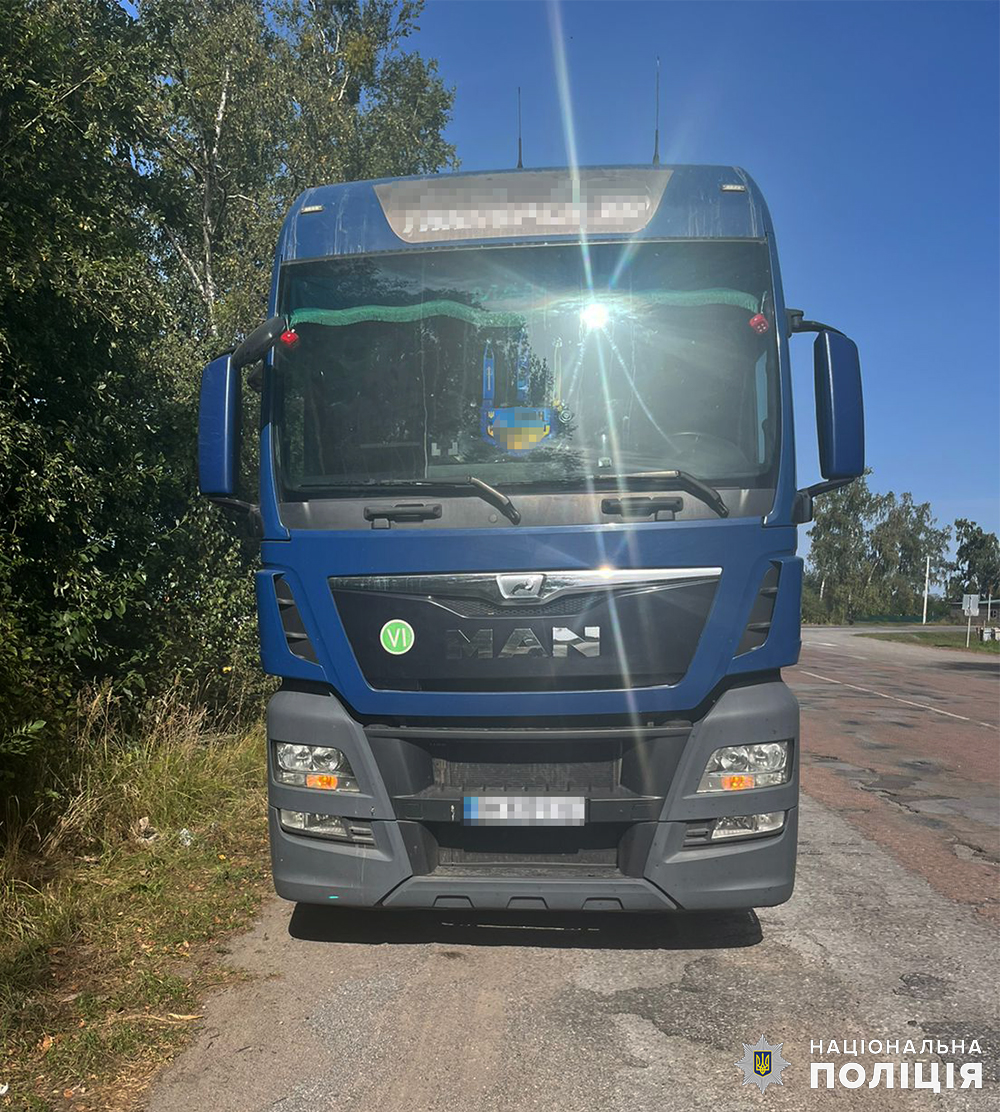 Днями правоохоронці відділення поліції №1 (смт Ємільчине) зупинили для перевірки на автодорозі поблизу с. Малого Яблунця Ємільчинської громади автомобіль «MAN» із напівпричепом.