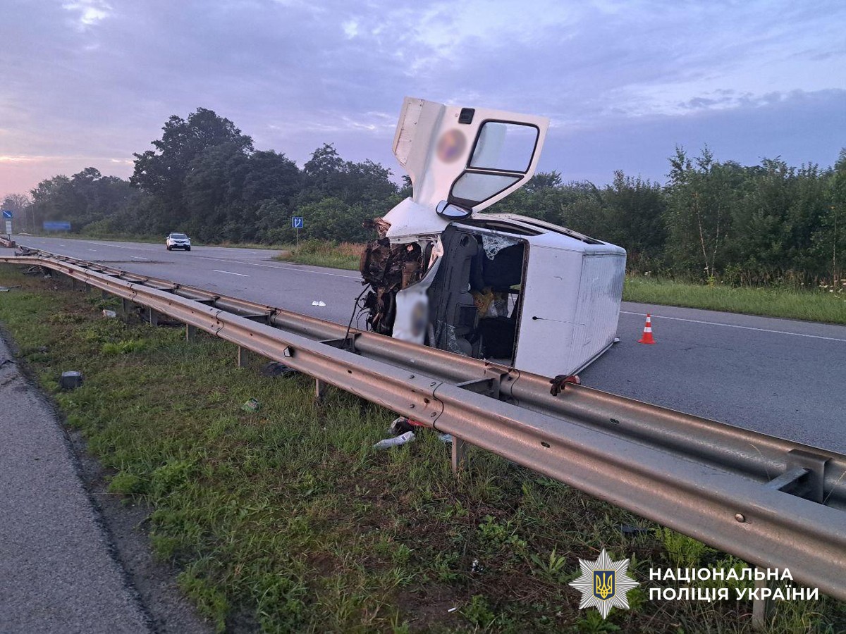 Попередньо, 60-річний житель м. Звягеля, керуючи автомобілем Fiat Ducato, здійснив наїзд на колесовідбійник. У результаті транспортний засіб перекинувся.