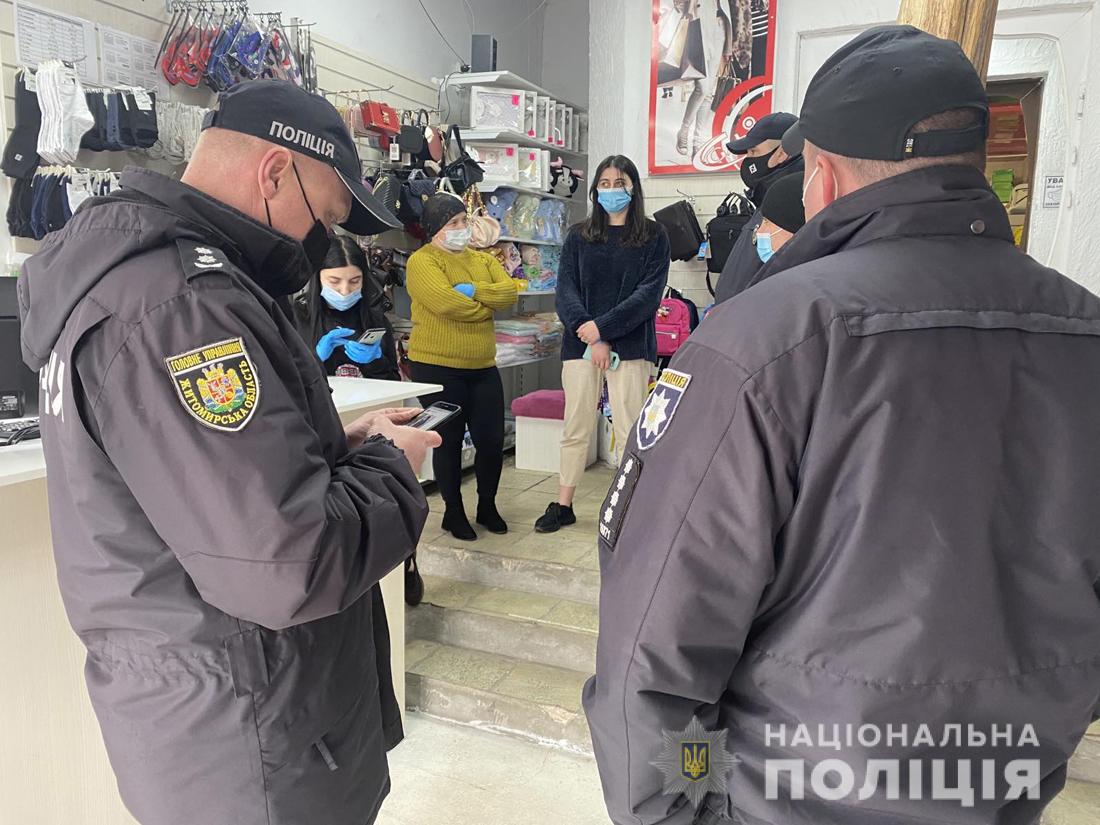 9 квітня перевіряти дотримання карантинних обмежень на Звягельщині вийшли додаткові патрулі поліцейський районного відділу та Головного управління поліції Житомирщини. У ході відпрацювання правоохоронці звертали увагу на громадські заклади та проводили застережні бесіди з громадянами.