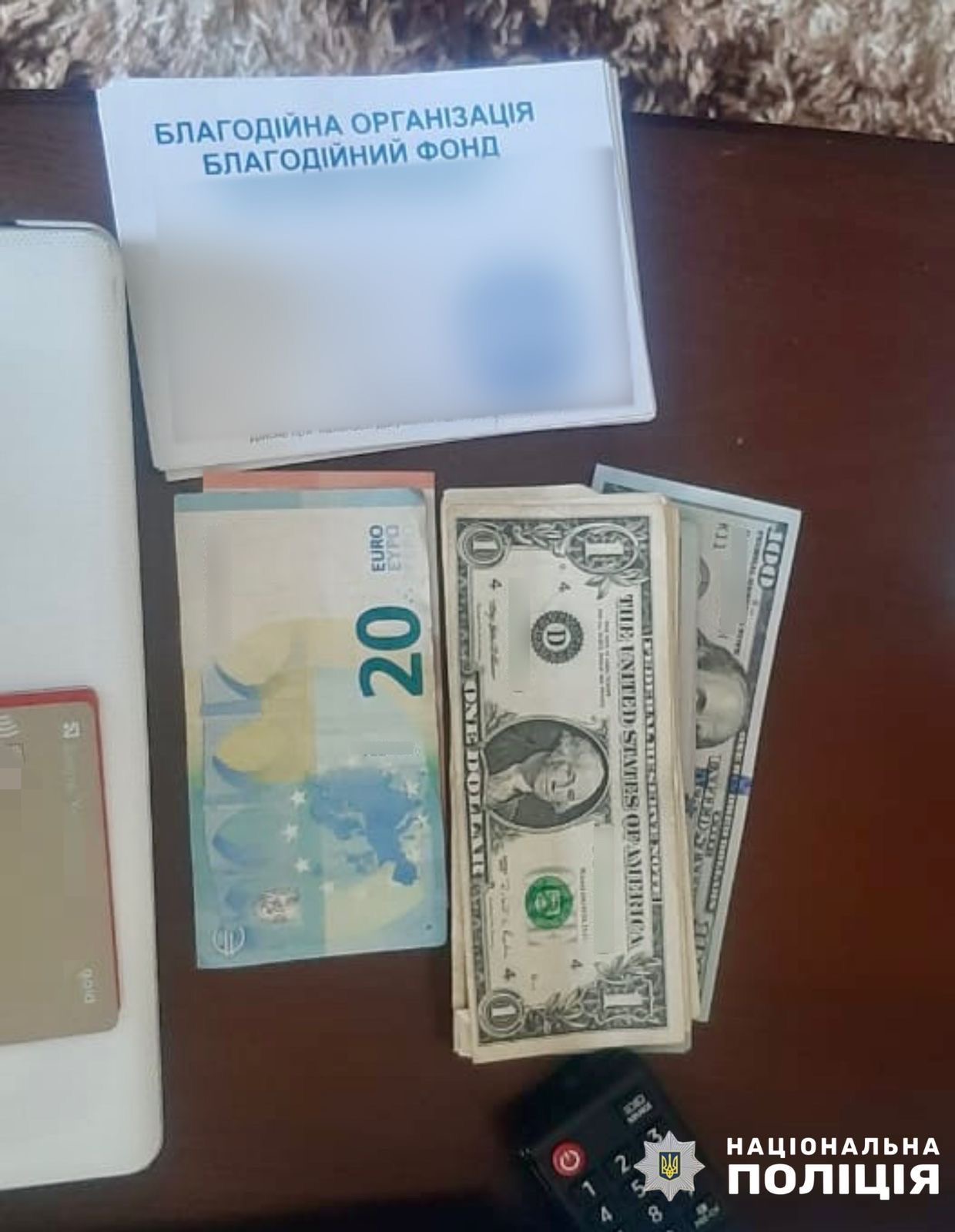 Уночі 2 травня правоохоронці провели затримання спільників. Тоді під час низки обшуків слідчі слідчого управління ГУНП області та Житомирського райуправління поліції вилучили готівку у гривнях та доларах, автомобілі, а також сім-картки, засоби зв’язку, банківські картки, печатки та документацію благодійної організації, чорнові записи.