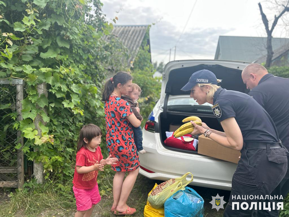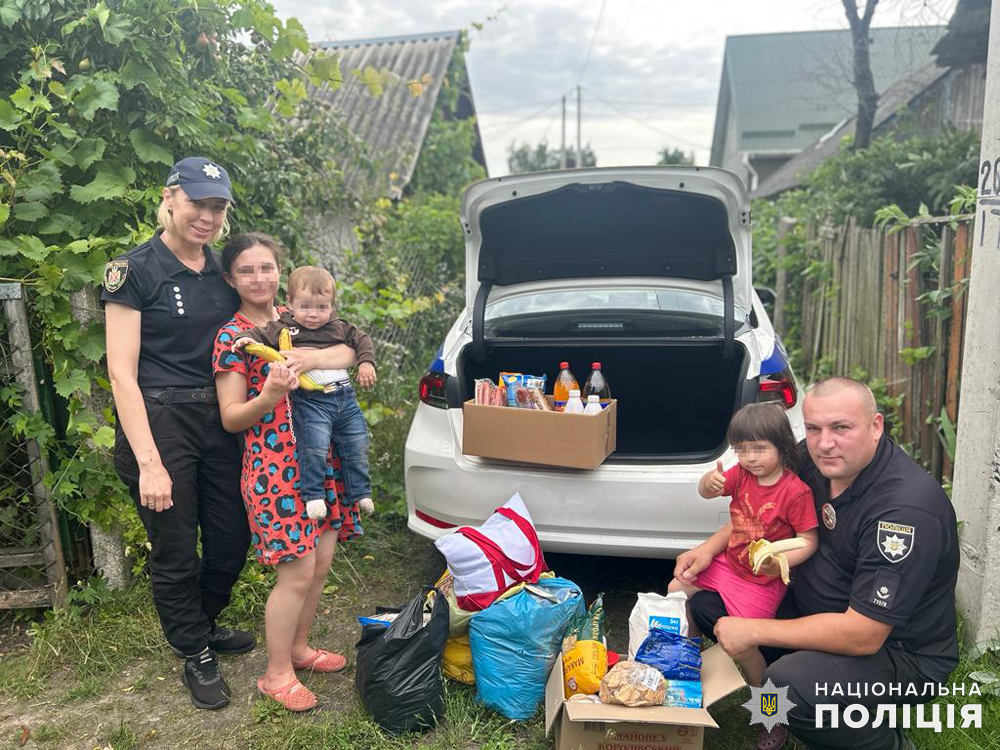Разом з тим поліцейські Звягельського райвідділу не лишилися осторонь. 14 липня вони знову завітали до сім’ї та передали одяг, харчові продукти, смаколики та інші речі для дітлахів. Із цим допомогли місцеві волонтери – Руслан Повальчук, Інна Яриновська та Тетяна Кулявець.