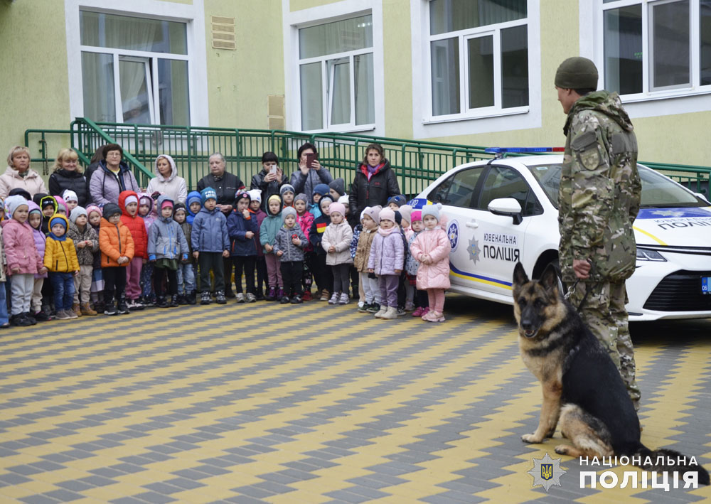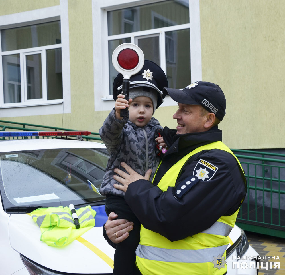 Крім того, правоохоронці розповіли діткам про особливості своєї роботи та показали їм спецзасоби. Особливу цікавість у дітей викликав службовий автомобіль, який вони із захопленням оглядали. Малюки спробували себе в ролі поліцейських, приміряли поліцейську амуніцію, світловідбиваючі жилети та посиділи за кермом автомобіля.
