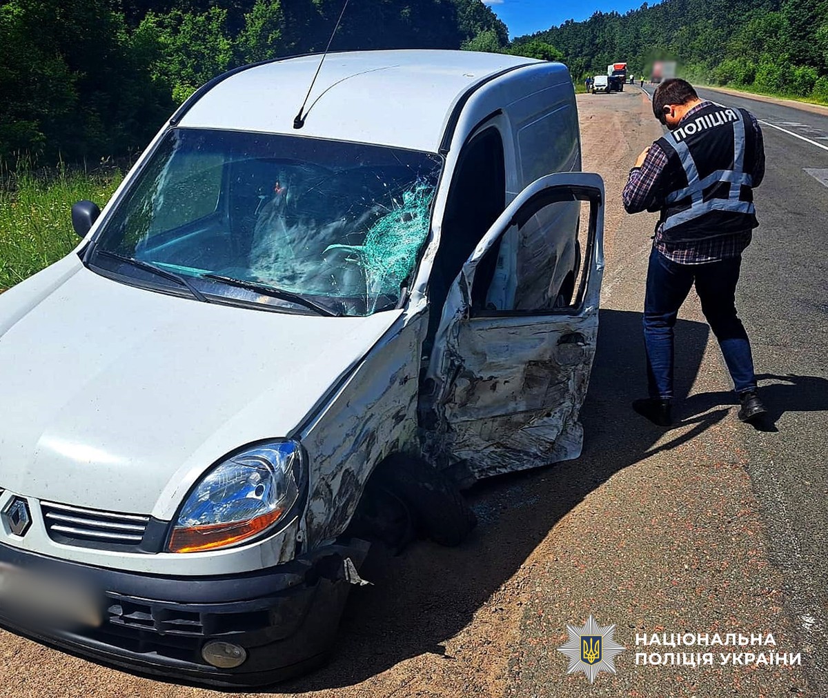 Від удару позашляховик змінив траєкторію руху, зіткнувся з вантажівкою DAF та з’їхав з проїжджої частини дороги.