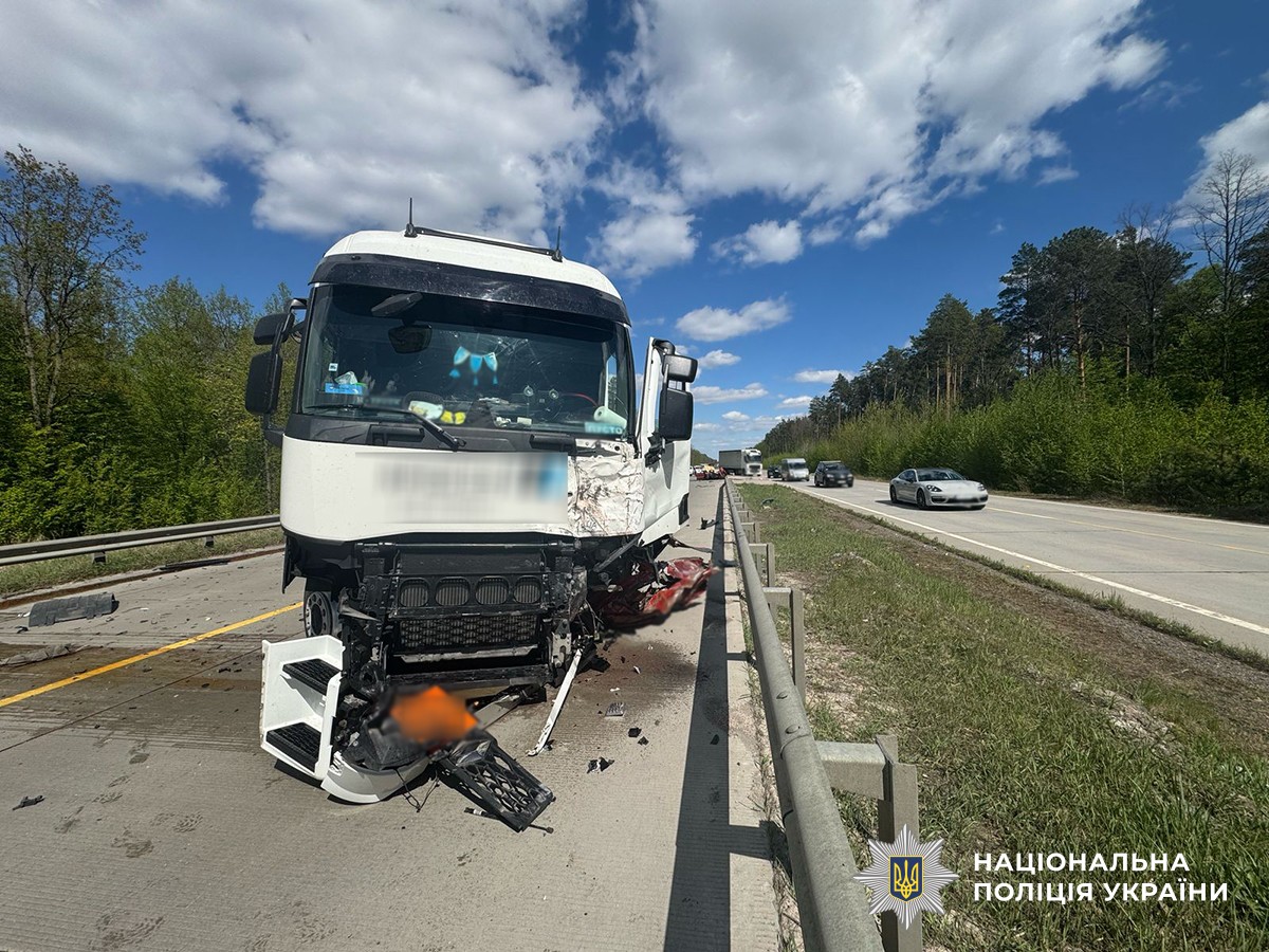 Попередньо, близько 14:15 сталося зіткнення автомобіля «Renault Kangoo» із зустрічним сідловим тягачем «Renault», за кермом якого знаходився 65-річний житель Київщини.