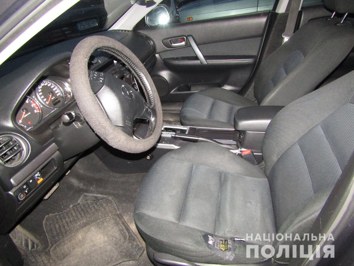 На розшук автівки було зорієнтовано усі зовнішні наряди поліції, які працювали у місті та районі. Під час обстеження прилеглих до місця події кварталів працівники сектору реагування патрульної поліції помітили схожий автомобіль, який виїжджав з дворів багатоповерхівок, і подали сигнал для водія про його зупинку. Однак керманич проігнорував вимогу поліцейських. Після нетривалого переслідування «Мазда» заглухла посеред перехрестя вулиць, а поліцейські затримали двох чоловіків, які знаходились у її салоні.