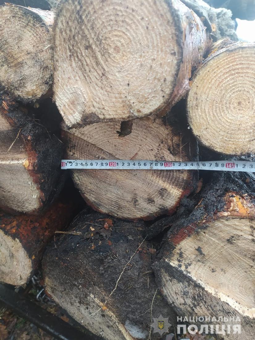 Близько 14:20 години між селами Калинівка та Бацево поліцейські Олевського відділення зупинили транспортний засіб. Як з’ясувалось, двоє місцевих жителів, віком 37 та 33 роки, перевозили 11 колод породи сосна. При цьому жодних документів, що підтверджували б законність походження деревини, чоловіки не мали.