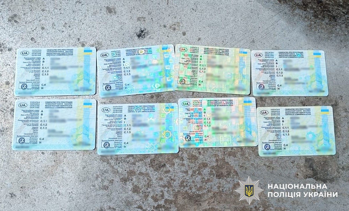 Слідчі слідчого управління ГУНП в Житомирській області провели низку обшуків та вилучили понад 20 свідоцтв про реєстрацію вантажного та легкового транспорту, майже десяток державних номерних знаків, паспорти громадян України та водійські посвідчення на різні імена, три автомобілі, частину металобрухту, тенти на вантажівку.