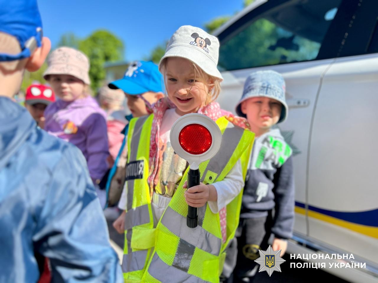 В ігровій формі правоохоронці ознайомили малечу з різними видами транспорту та перевірили, наскільки добре вони знають сигнали світлофора.