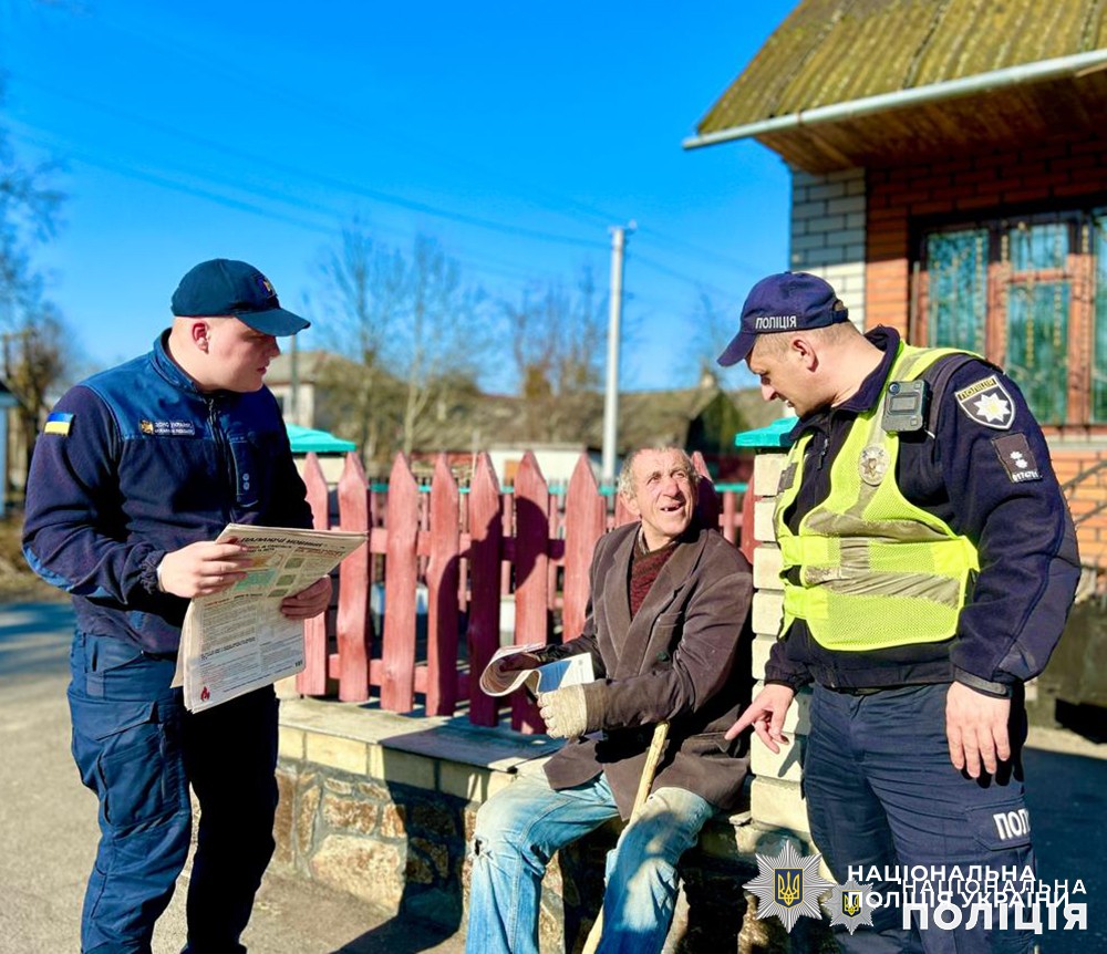 21 березня інспектори сектору реагування патрульної поліції Звягельського райвідділу спільно зі співробітниками ДСНС провели профілактичні бесіди з жителями сіл Наталівки, Олександрівки та Чижівки щодо запобігання пожеж в екосистемах.