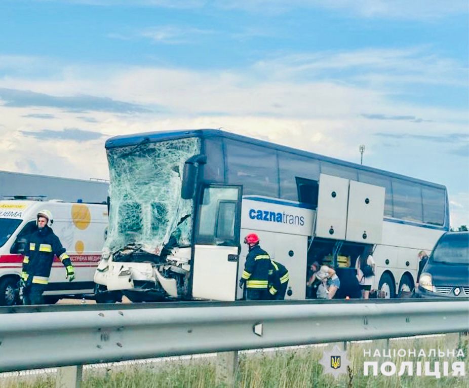 Поліцейські встановлюють обставини ДТП за участі автобуса міжнародного рейсу та зерновоза