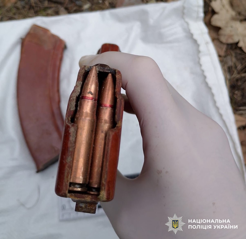16 березня оперативники відділу поліції № 1 Житомирського райуправління проводили відпрацювання території обслуговування. Неподалік одного з населених пунктів Тетерівської громади правоохоронці помітили споруду, схожу на бліндаж. Усередині знаходився сховок зі зброєю та боєприпасами.