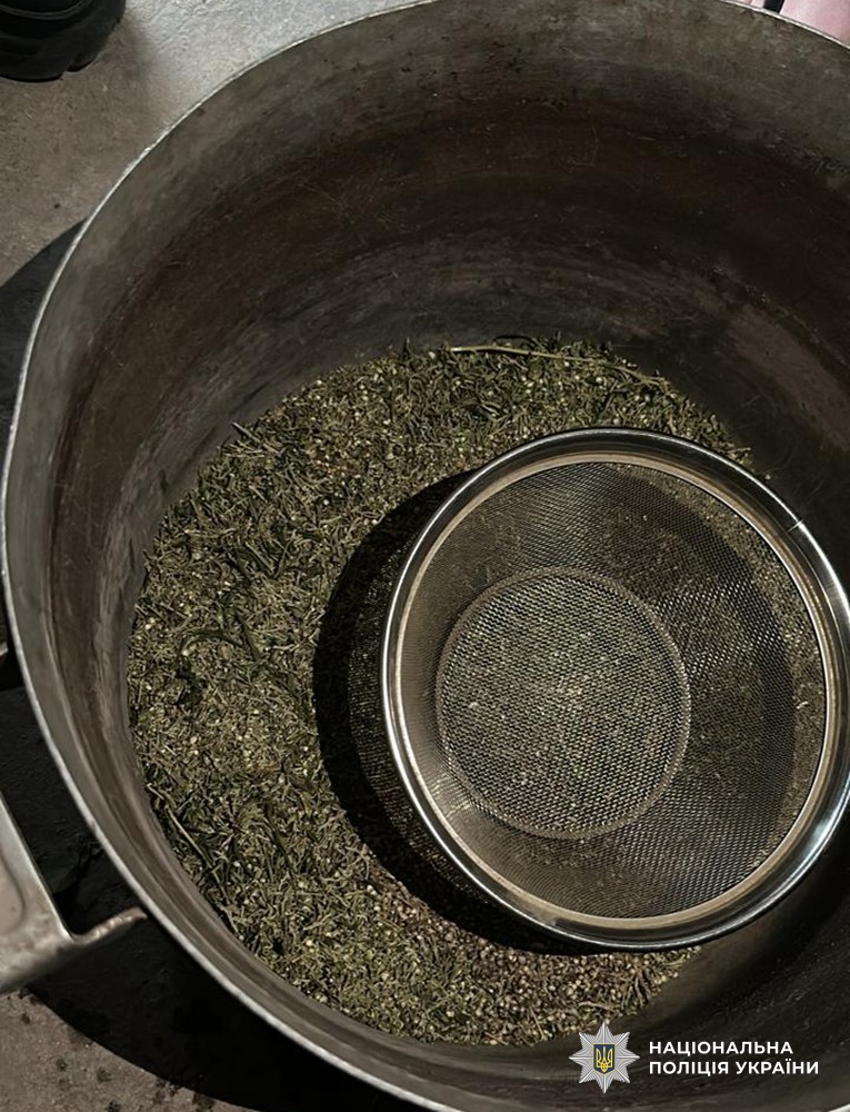 В оселі правоохоронці виявили рослинну масу, схожу на коноплі, вже сухою та подрібненою. Окрім цього, там знаходився пакет з білою порошкоподібною масою.