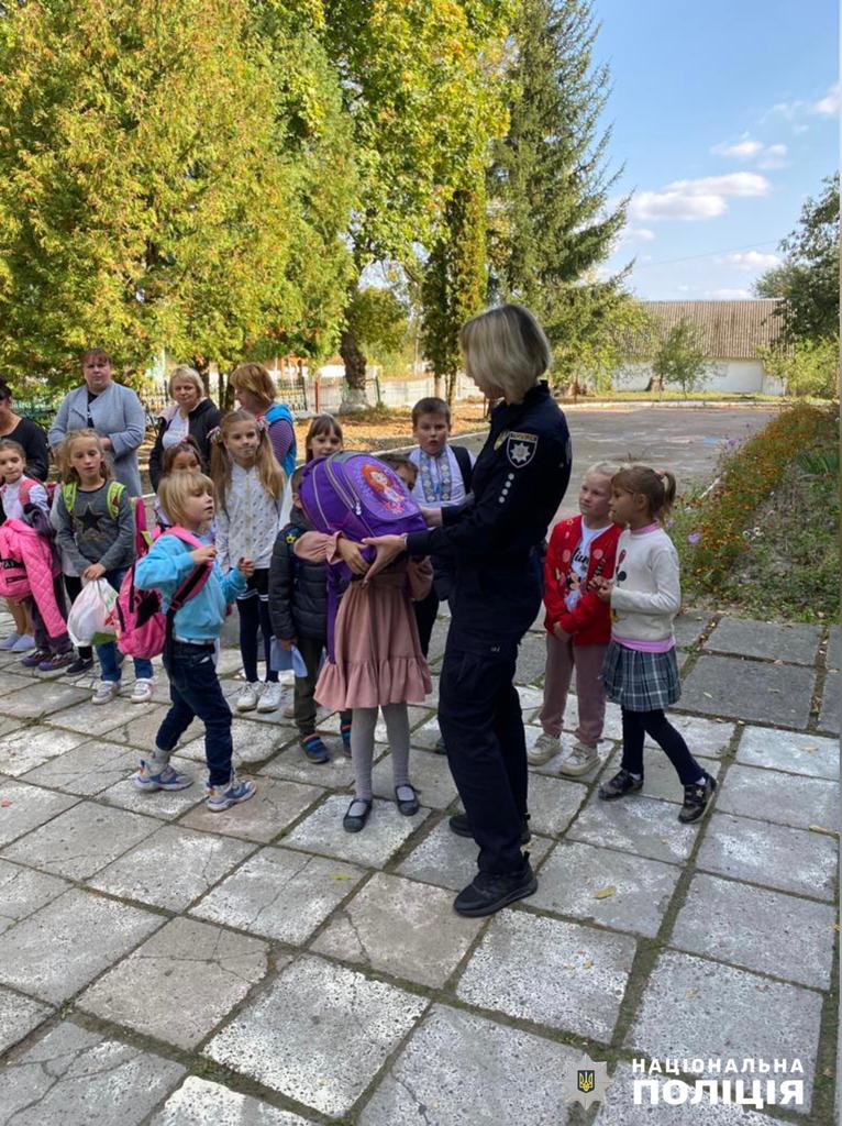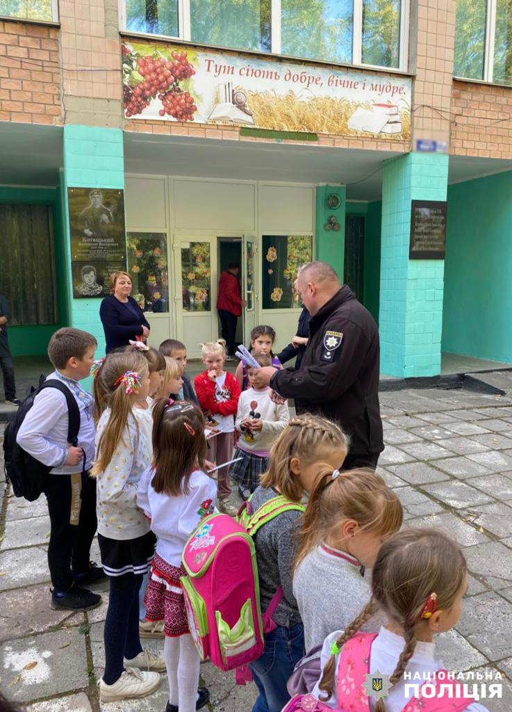 Під час зустрічі поліцейські нагадали, як правильно переходити проїжджу частину, роз’яснили, що юні велосипедисти мають право виїздити на вуличну мережу лише з 14 років та розповіли про дорожні знаки.