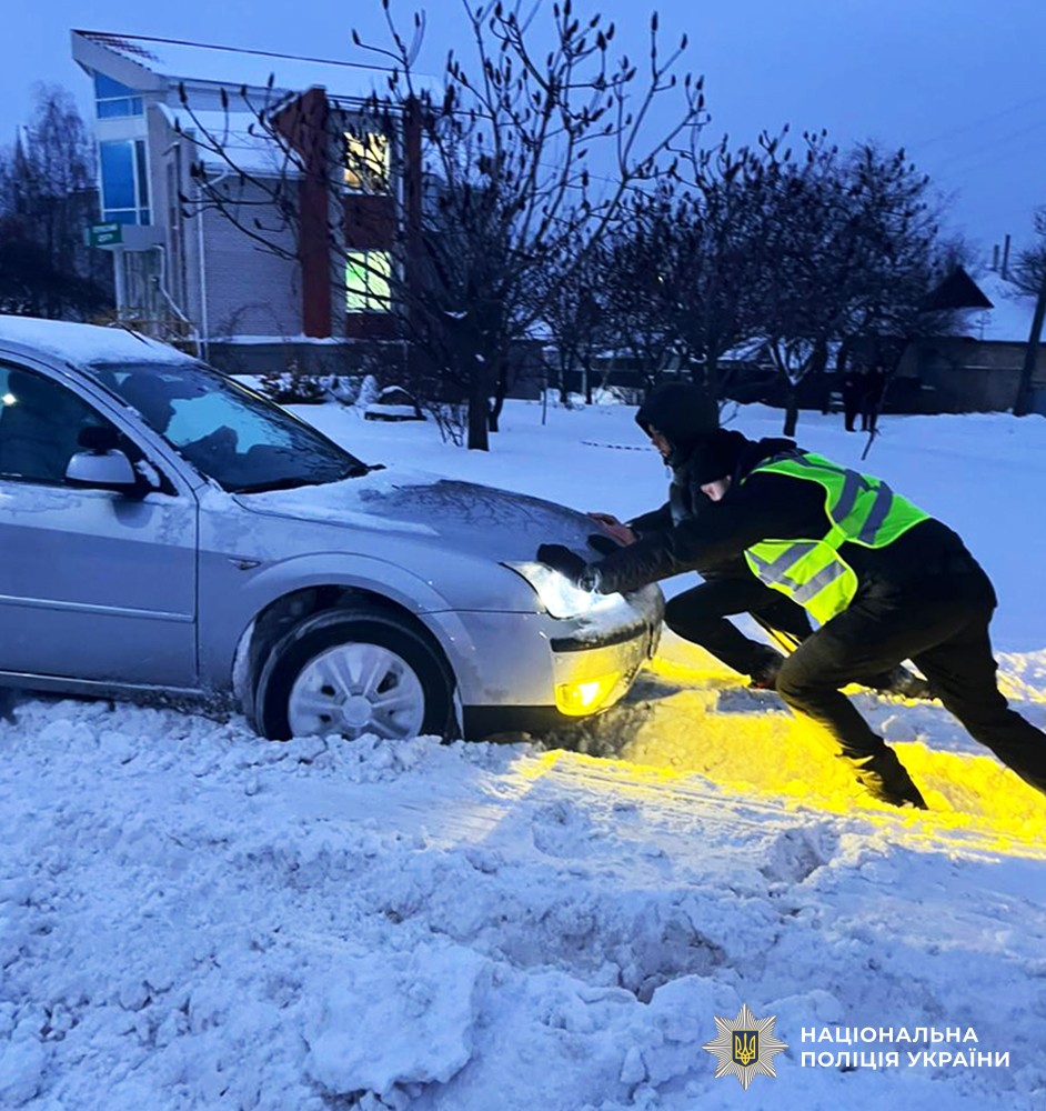 Правоохоронці цілодобово працюють, аби своєчасно реагувати на ускладнення дорожньої обстановки та надавати допомогу громадянам, які опинилися в скрутному становищі через складні погодні умови.