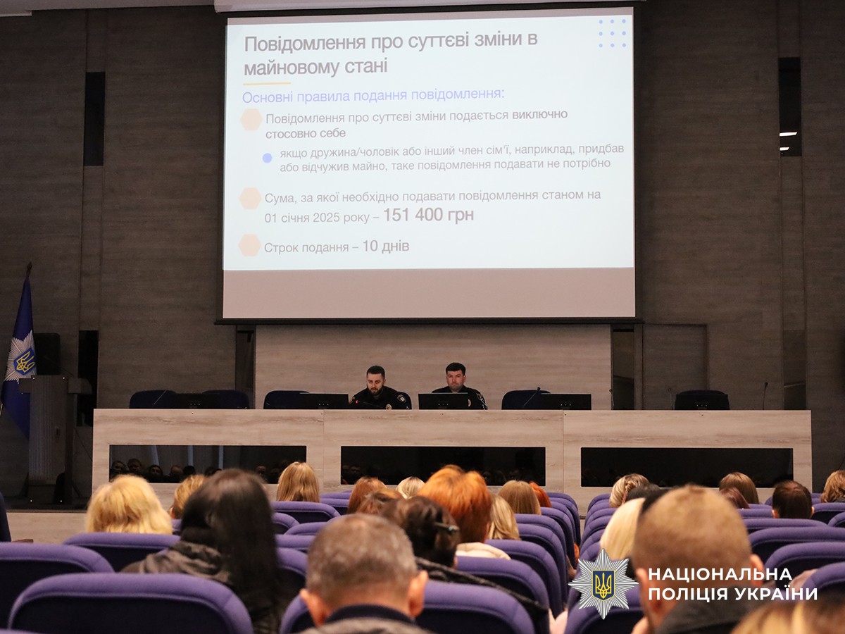 Під час навчання поліцейським нагадали основні вимоги законодавства щодо заповнення електронних декларацій, порядок їх подання та строки. Особливу увагу приділили типовим помилкам, які найчастіше допускаються під час внесення відомостей, та роз’яснили порядок подання виправленої декларації у разі виявлення неточностей.