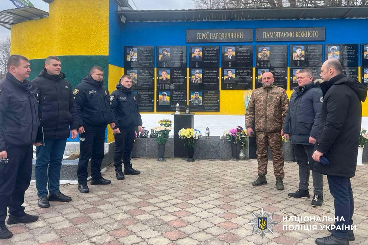 У Народицькій громаді правоохоронці разом із представниками місцевої влади віддали шану загиблим колегам. Присутні згадали їхній героїчний подвиг, поклали квіти до меморіальної дошки та вшанували пам’ять хвилиною мовчання, висловлюючи глибоку вдячність за відданість службі та мужність.