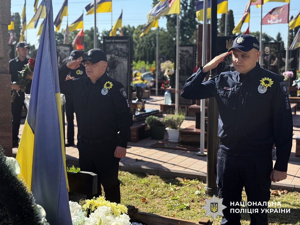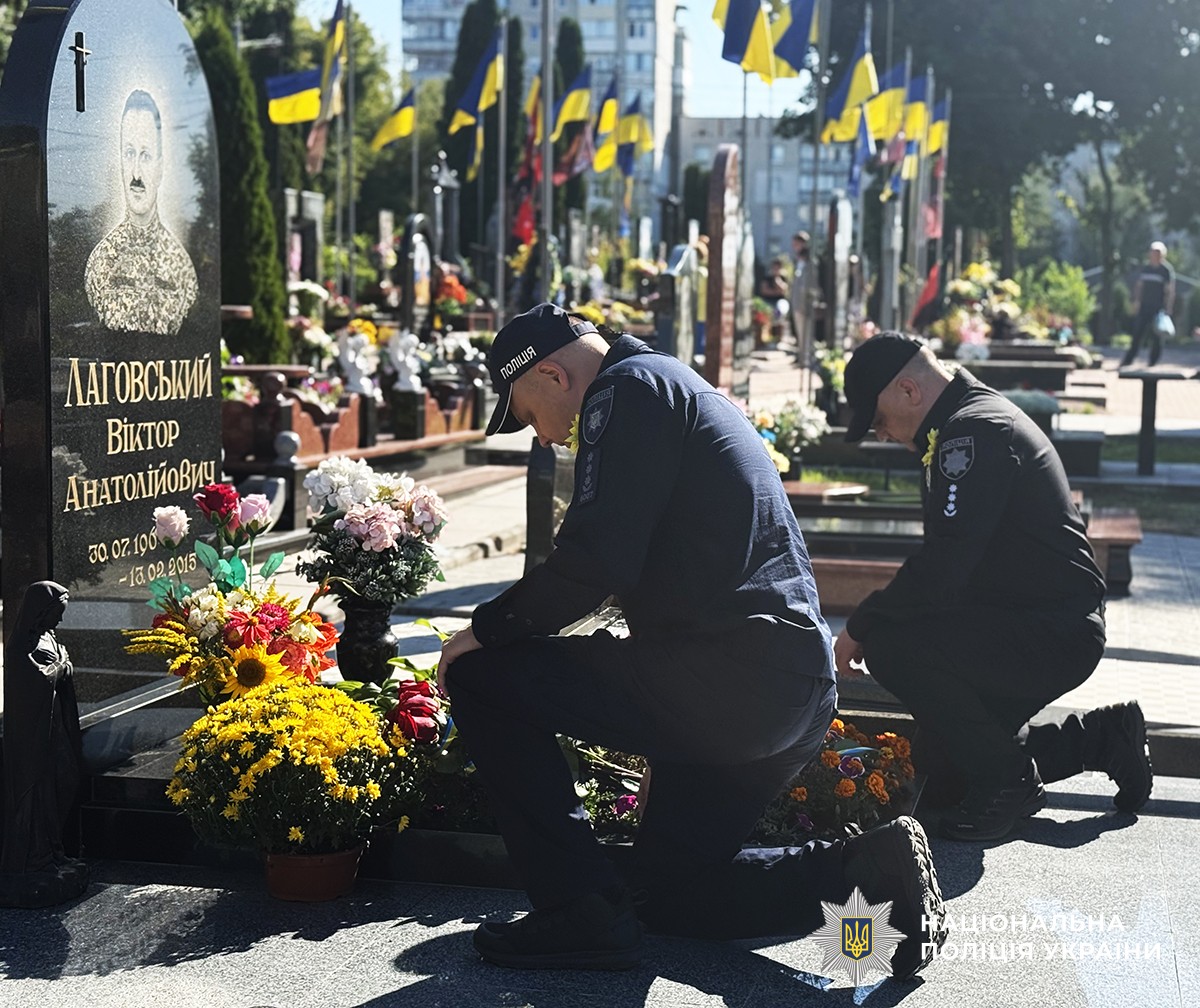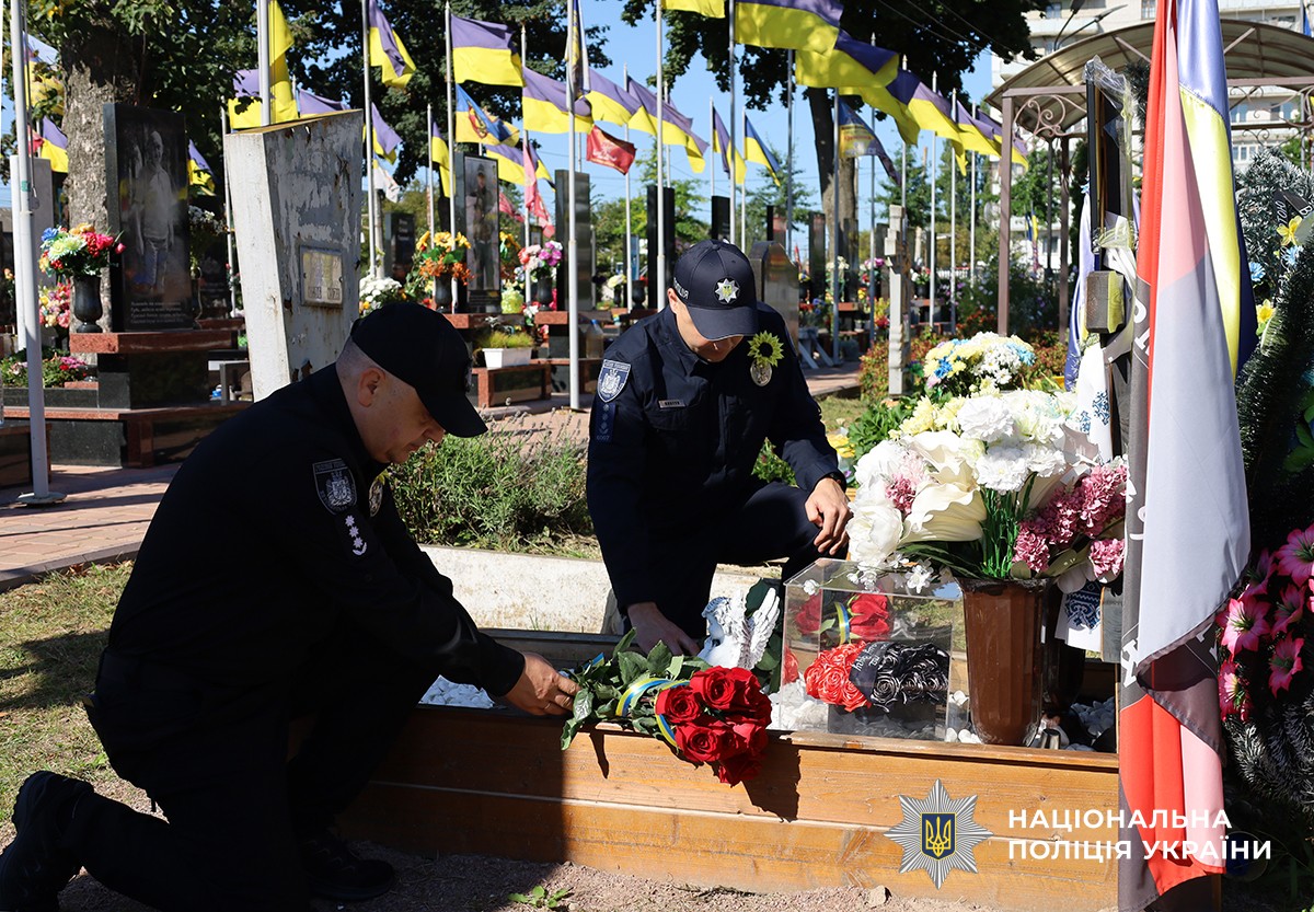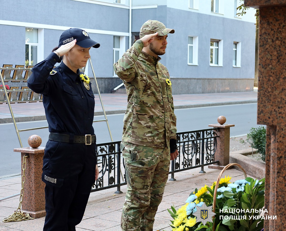Також квіти поклали до обеліска загиблим правоохоронцям поблизу адміністративного приміщення ГУНП області.