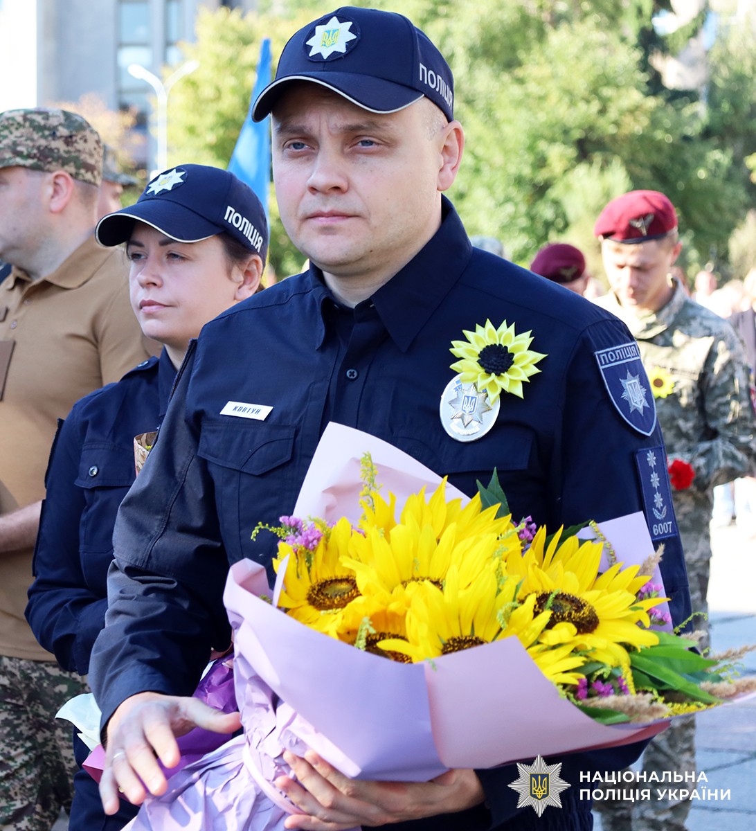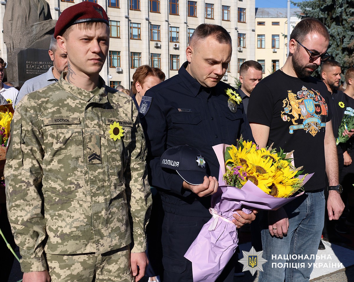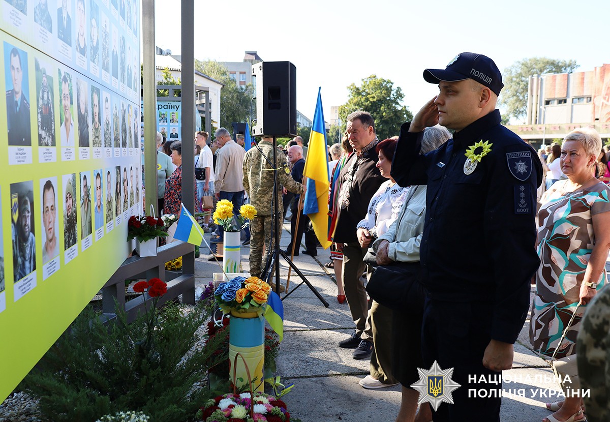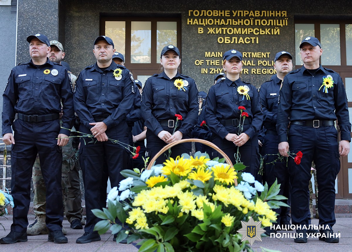Начальник ГУНП в Житомирській області Олександр Ковтун разом з керівниками обласної військової адміністрації, обласної ради та міста, поліцейськими, військовими, ветеранами та містянами схилили голови, віддавши данину тим, завдяки кому ми живемо та можемо продовжувати боротьбу.